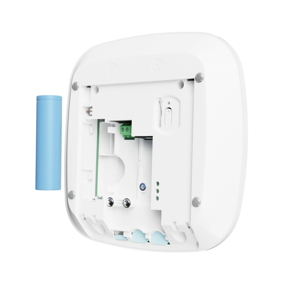 Smart HUB Plus LV został wyposażony w akumulator pełniący rolę zapasowego źródła energii, co gwarantuje ciągłość pracy systemu w przypadku zaniku zasilania głównego. Urządzenie na bieżąco monitoruje napięcie i automatycznie przełącza się w tryb awaryjny, jednocześnie powiadamiając użytkownika przez aplikację, SMS lub połączenie głosowe. Dodatkowo wbudowane zabezpieczenia chronią akumulator przed nadmiernym rozładowaniem, a w aplikacji można samodzielnie ustawić parametry ochrony zasilania.