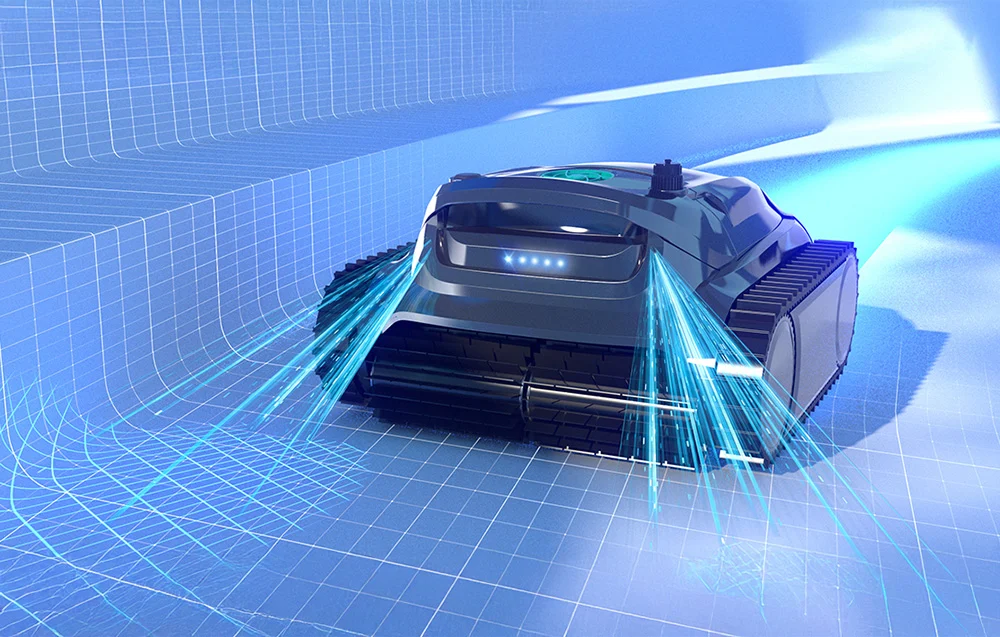 Wybot M1 potrafi wspinać się po ścianach i czyścić linię wody, czyli strefę, w której najczęściej zbiera się trudniejszy osad. Robot radzi sobie również z rampami, stopniami i odpływami o wysokości do około 3 cm, co pomaga utrzymać ciągłość pracy bez częstego przestawiania urządzenia. W efekcie sprzątanie obejmuje więcej newralgicznych miejsc, a basen wygląda równiej czysto na całej powierzchni.