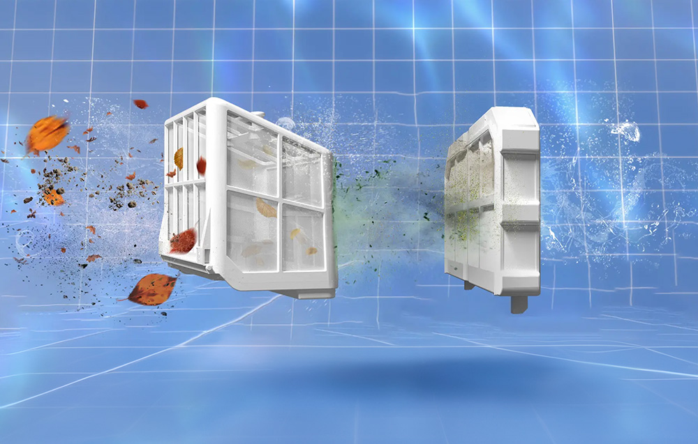 System 3D Adsorption łączy kosz filtracyjny o dokładności 180 μm z ultra-drobną gąbką 40 ppi. Taka dwupoziomowa filtracja skutecznie wychwytuje brud o różnych rozmiarach - od drobnego pyłu i piasku po liście, włosy i kamienie - co pomaga utrzymać wodę bardziej przejrzystą.