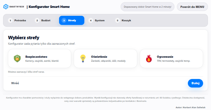 Tak, konfigurator został stworzony z myślą o osobach bez doświadczenia w smart home. Prowadzi użytkownika krok po kroku.