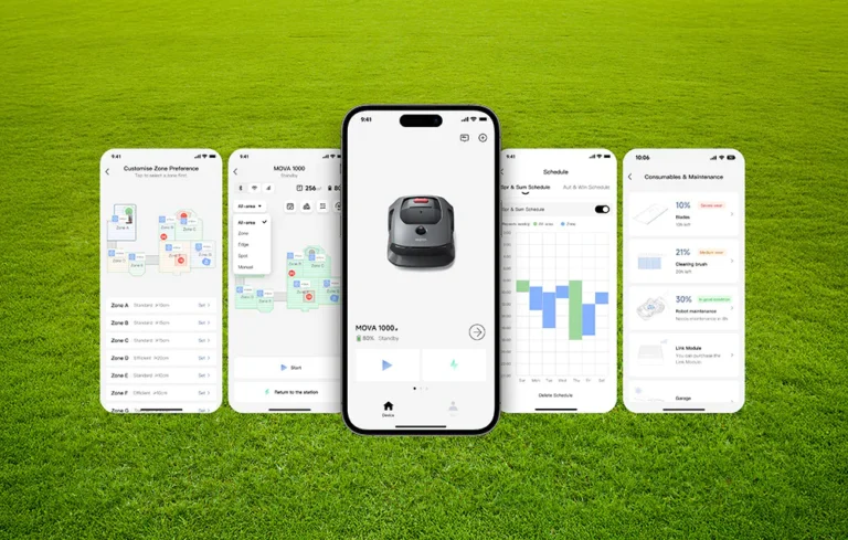 Kosiarki smart pozwalają ustawić harmonogram, wysokość koszenia, wybrane obszary pracy i planowanie dla różnych stref. Za pomocą aplikacji możesz zmienić ustawienia, zatrzymać urządzenie, sprawdzić stan baterii albo zobaczyć, czy robot sam zakończył koszenie i wrócił do stacji.