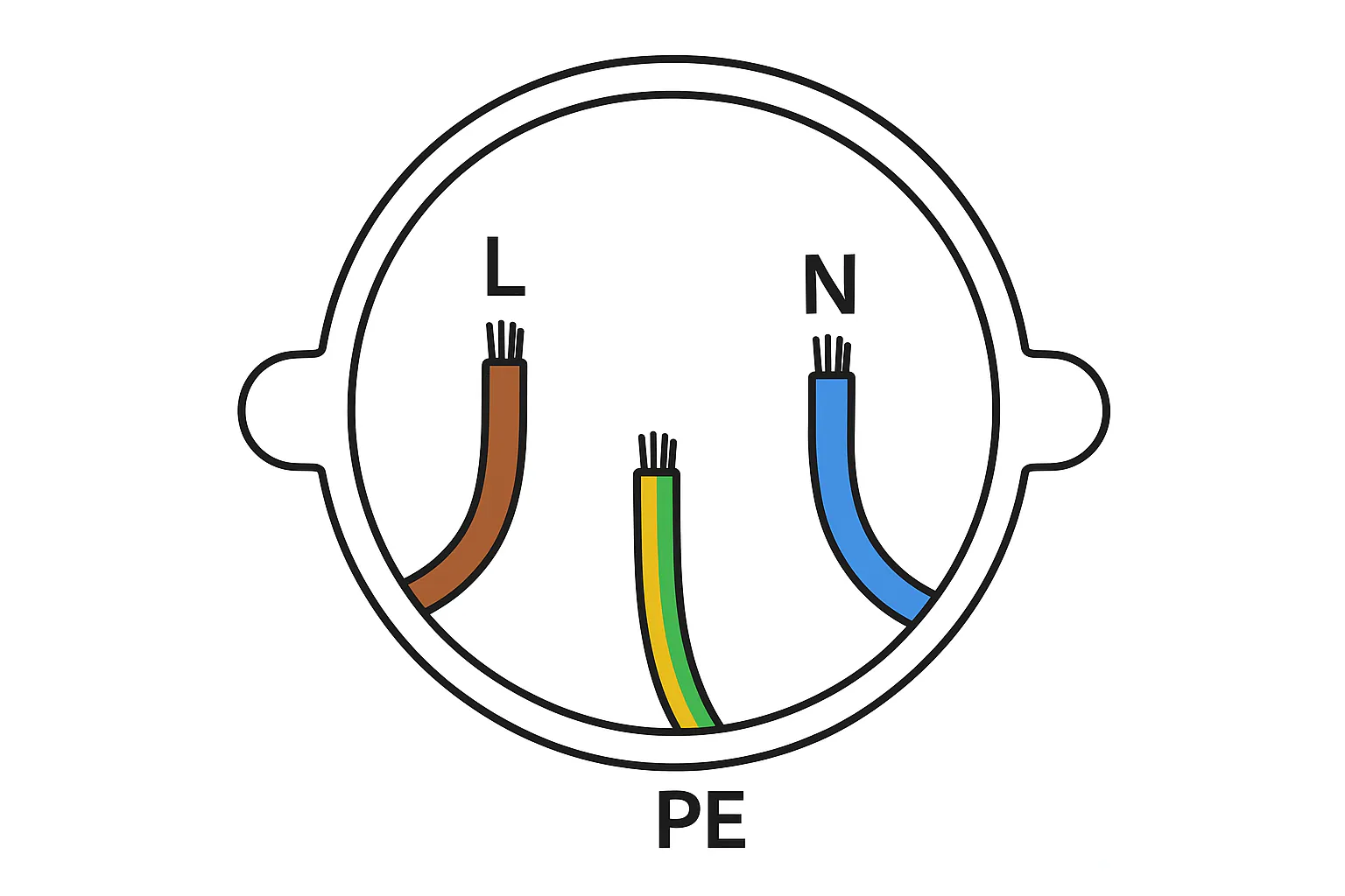 Przewód neutralny (PE), Przewód fazowy (L), Przewód neutralny (N)