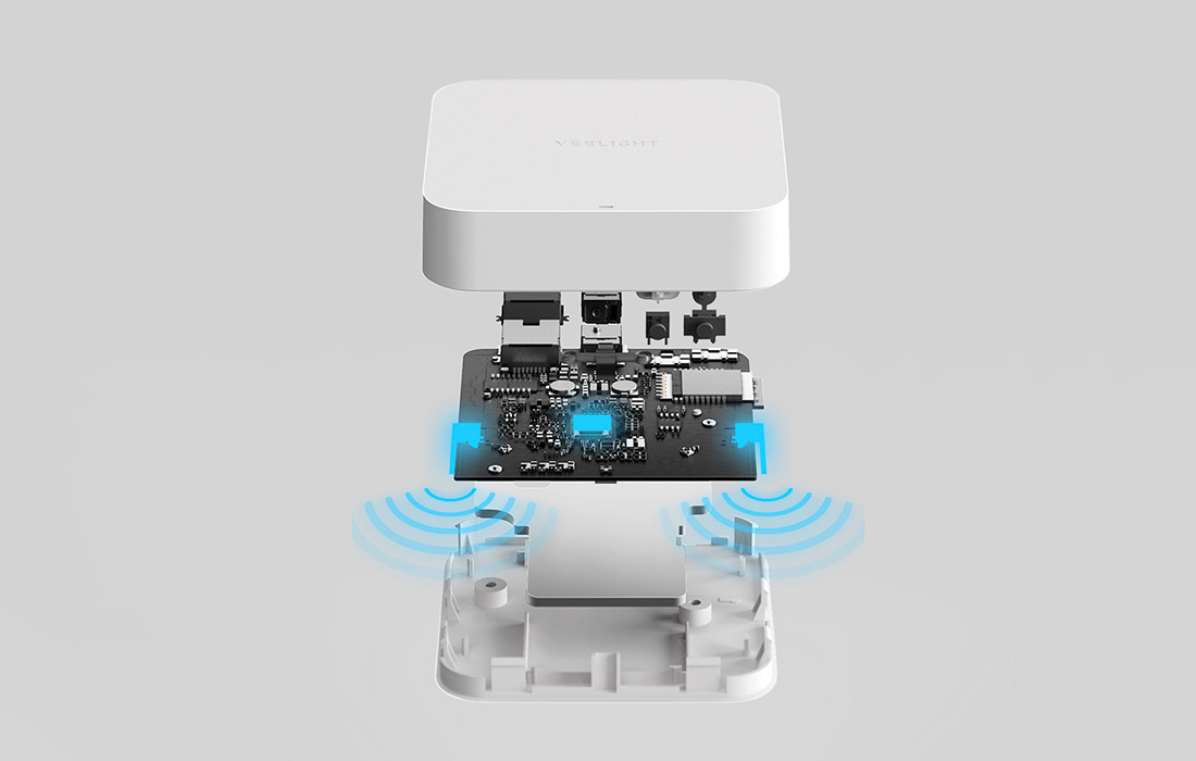 Yeelight Mesh Gateway została wyposażona w wydajny chip Wi-Fi, który gwarantuje płynne i niezawodne działanie. Dzięki technologii bezprzewodowej 2x2 MIMO urządzenie oferuje mocny sygnał o szerokim zasięgu, który bez trudu przenika przez ściany i dociera tam, gdzie tego potrzebujesz. Koniec z problemami z łącznością – teraz możesz sterować oświetleniem zdalnie, sprawnie i bez przeszkód.