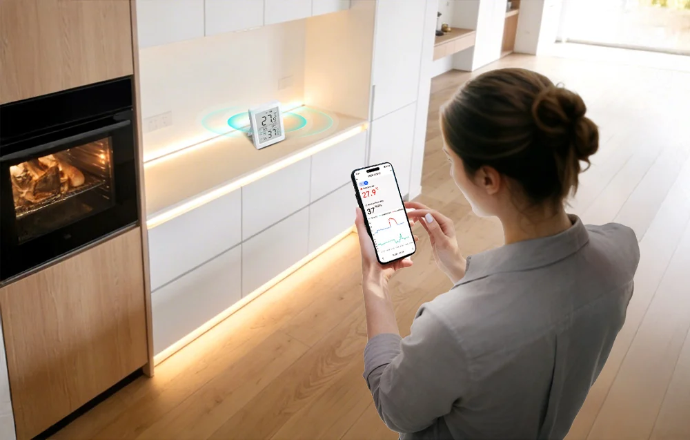 W środku pracuje sprawdzony, profesjonalny Sensirion SHT40, znany z zastosowań pomiarowych i przemysłowych, gdzie stabilność odczytów ma realne znaczenie. Taka baza przekłada się na praktykę: łatwiej zadbać o jakość snu, komfort dzieci, kondycję roślin, a także ochronę żywności czy wina przed niekorzystną wilgotnością, bo urządzenie daje pewne i powtarzalne pomiary. To rozwiązanie dla osób, które wolą dane, a nie domysły, zwłaszcza gdy różnica kilku procent wilgotności potrafi zmienić odczuwalny komfort.