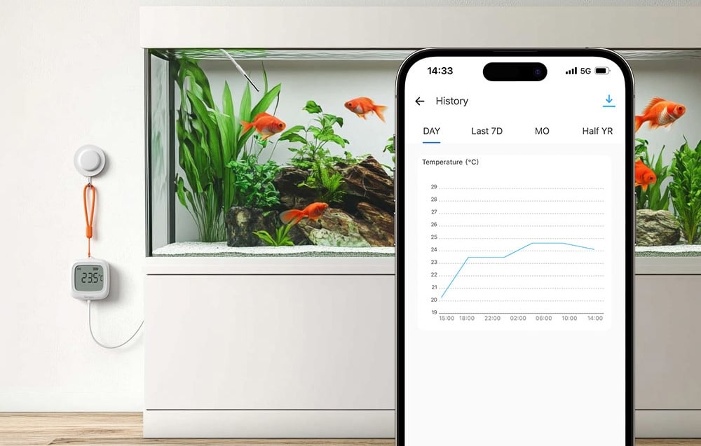 Dzięki aplikacji eWeLink możesz w każdej chwili sprawdzić aktualną temperaturę, a także analizować historię pomiarów z ostatnich 180 dni. System umożliwia podgląd danych dziennych, miesięcznych oraz półrocznych, co ułatwia kontrolowanie temperatury w akwariach, chłodniach czy innych wrażliwych miejscach. Wszystko to pozwala lepiej zarządzać środowiskiem i reagować na zmiany z odpowiednim wyprzedzeniem.