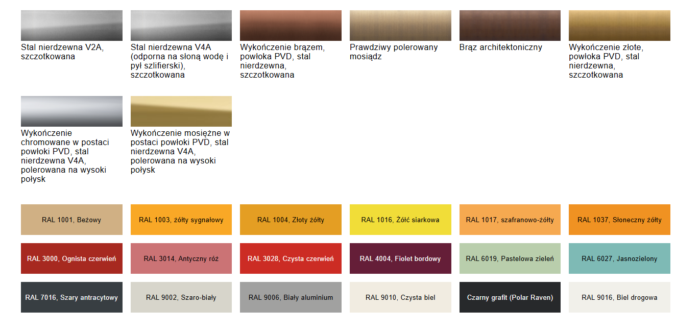 Istnieje możliwość wyboru materiału wykonania oraz koloru wykończenia - wyślij do Nas e-mail, a my przedstawimy Ci indywidualną ofertę!