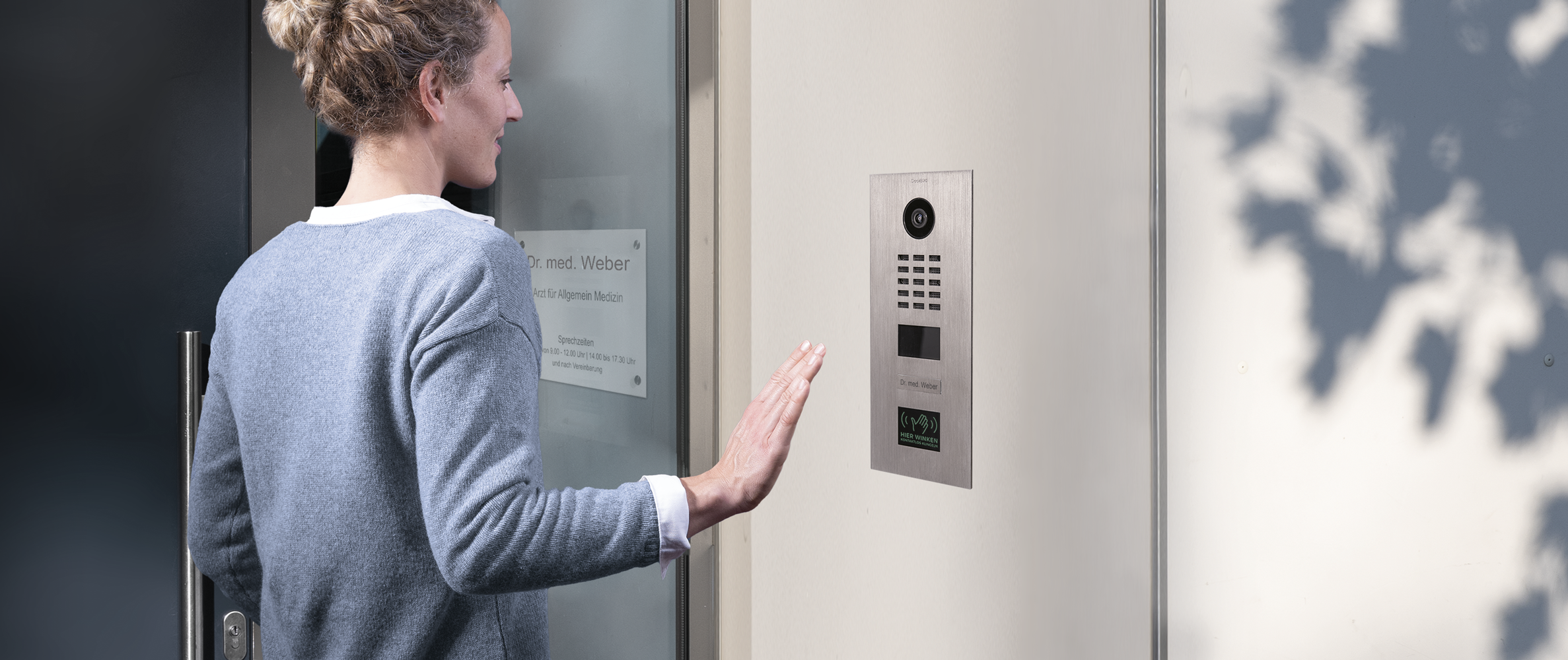 Ten wideodomofon IP został zaprojektowany specjalnie do stref wejściowych, w których przewija się dużo osób i liczy się higiena oraz wygoda obsługi. Panel wykonano ze stali nierdzewnej V2A o szczotkowanym wykończeniu, a kluczowym elementem zestawu jest bezdotykowy moduł przycisku wywołania, działający w oparciu o wysokiej klasy czujnik radarowy, który pewnie wykrywa ruch z bliskiej odległości. Urządzenie ma wbudowaną kamerę i jeden przycisk wywołania, dzięki czemu stanowi gotowe rozwiązanie do wejść, w których kontakt z powierzchniami powinien być ograniczony.