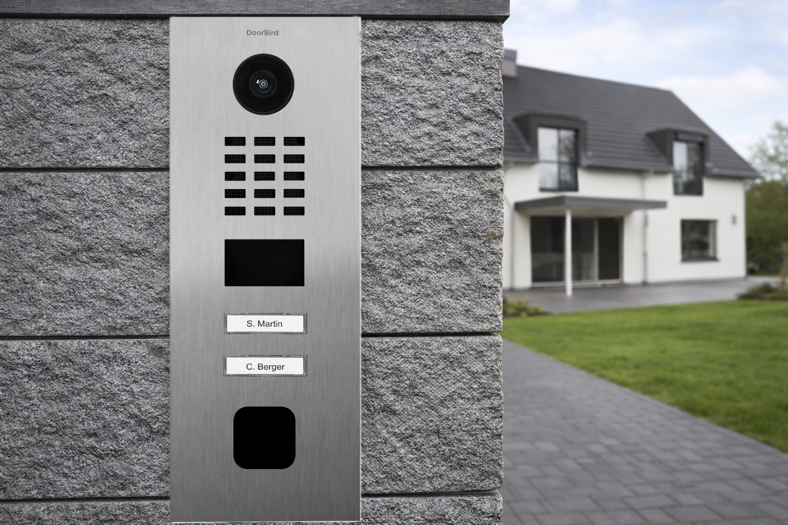 Model udostępnia Open API i lokalny interfejs do integracji z systemami firm trzecich oraz SIP, a kompatybilność z rozwiązaniami Smart Home i NVR obejmuje między innymi: Control4, Loxone, Crestron, Synology, AVM FRITZ!Fon, URC, QNAP, RTI, ELAN, Fibaro, Bang and Olufsen i inne. Wbudowany czytnik RFID można konfigurować zdalnie w aplikacji, również z ustawieniem okien czasowych, a czujnik ruchu 4D działa do 10 m z regulacją co 1 m, co ułatwia dopasowanie detekcji do strefy wejścia. Urządzenie wspiera geofencing, automatyczny brzęczyk drzwi oraz scenariusze działań, które pomagają uporządkować codzienną obsługę wejścia. Całość uzupełniają 2 dowolnie konfigurowalne przekaźniki bistabilne, pozwalające sterować dwoma drzwiami lub bramami z poziomu aplikacji, w trybie chwilowym albo stałego obwodu. Panel ma też podświetlane pola opisowe przy przyciskach, co poprawia czytelność po zmroku, a front jest przygotowany pod integrację z ekey sLine, który nie jest dołączony do zestawu.