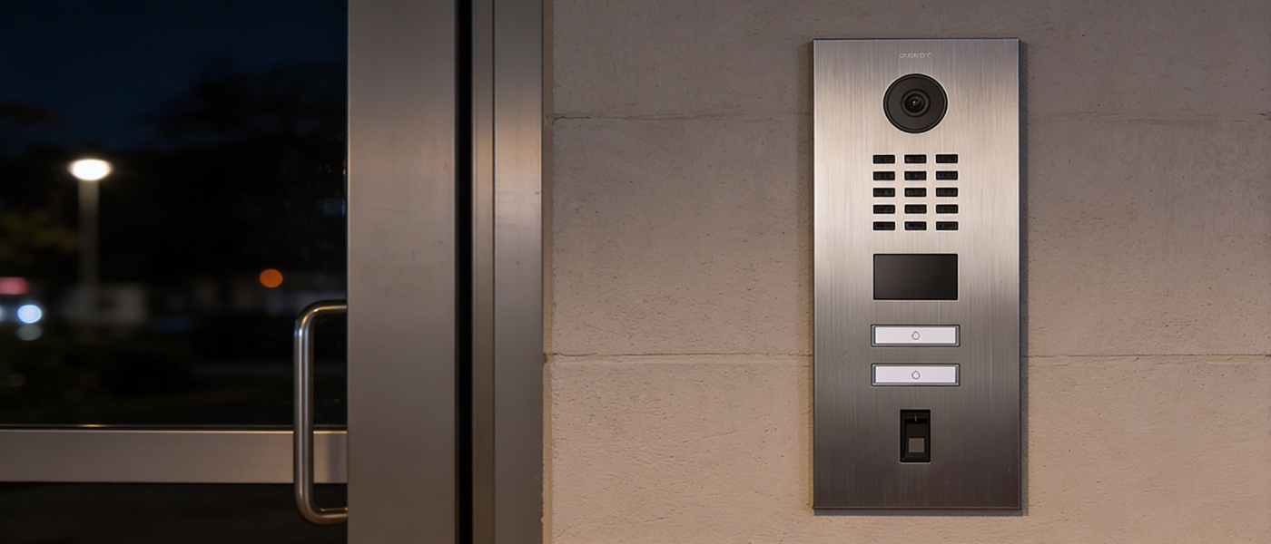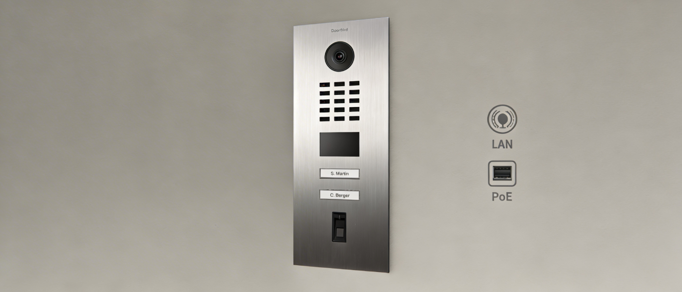 DoorBird D2102FV Fingerprint 50 to wideodomofon IP, który łączy profesjonalny wygląd z nowoczesną kontrolą dostępu. Panel wykonano ze stali nierdzewnej V2A o szczotkowanym wykończeniu, dzięki czemu dobrze prezentuje się w budynkach firmowych i wielolokalowych, a jednocześnie jest odporny na intensywne użytkowanie.