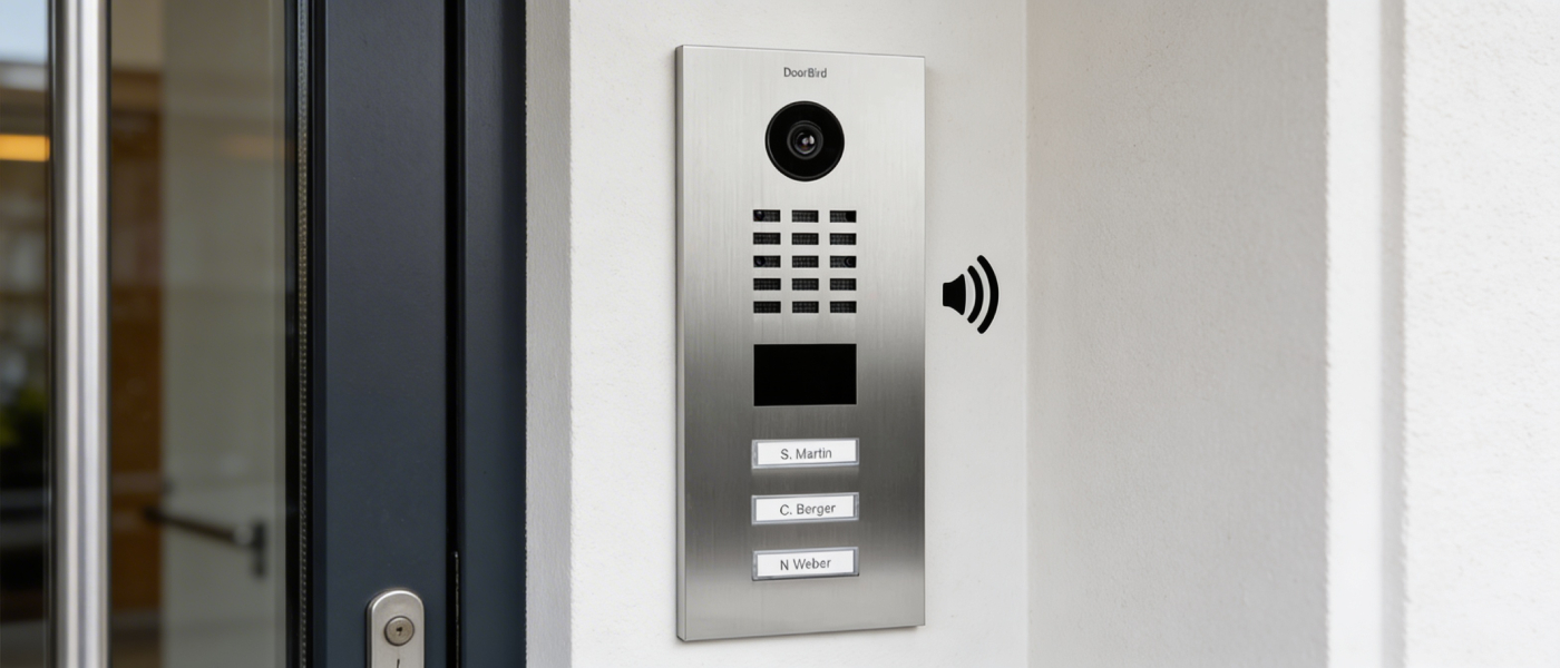 Ten system domofonowy DoorBird został zaprojektowany z myślą o miejscach, gdzie wejście obsługuje więcej niż jedna osoba lub firma - dlatego oferuje 3 jednostki i 3 przyciski wywołania.