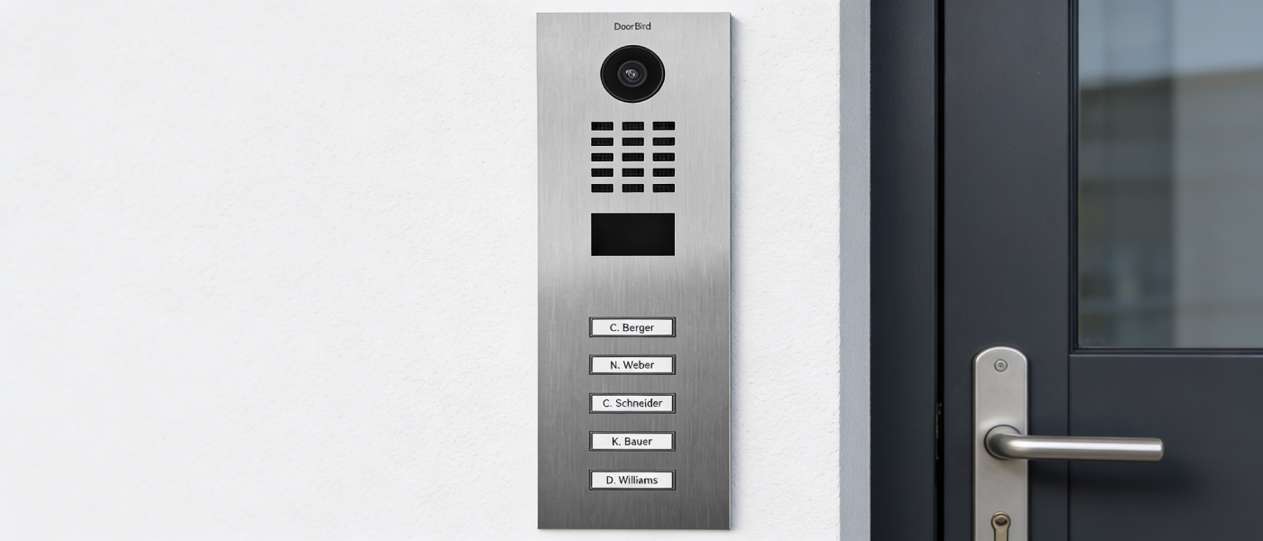 Wideodomofon DoorBird D2105V to profesjonalny wideodomofon IP zaprojektowany do budynków wielorodzinnych i firm, w których wejście obsługuje kilka lokali lub działów.