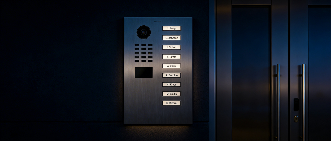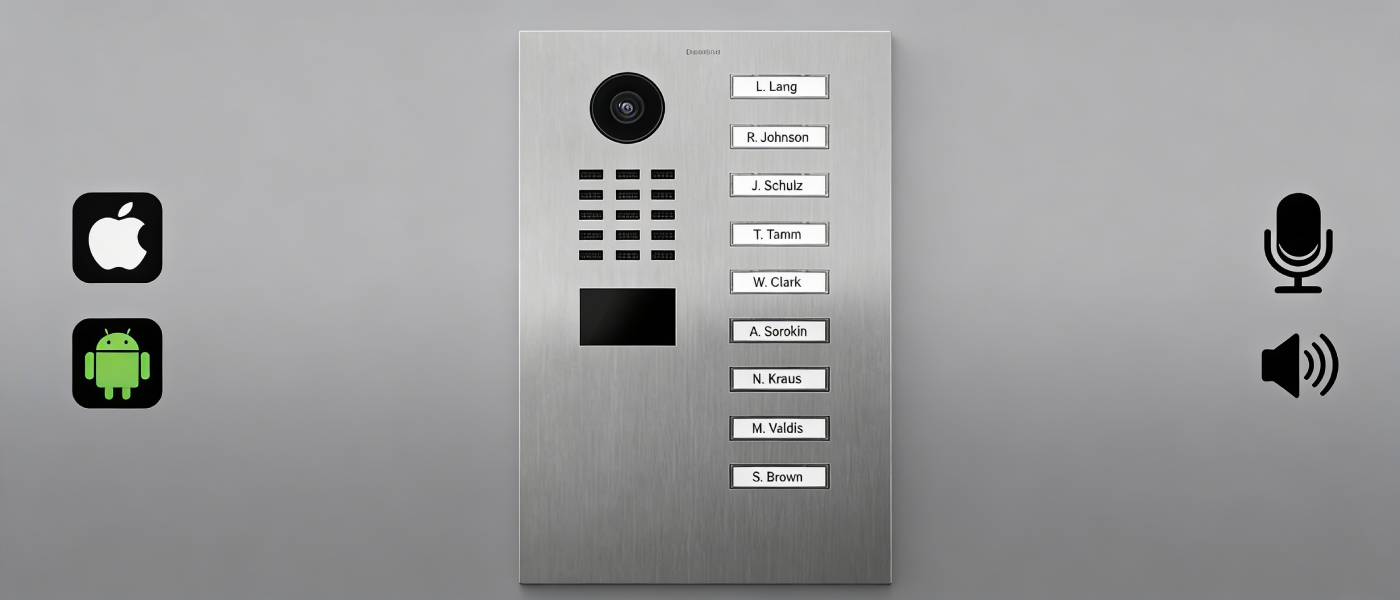 DoorBird D2109V to wideodomofon IP stworzony do budynków wielolokalowych i środowisk biznesowych, w których wejście ma działać pewnie, szybko i w sposób intuicyjny dla odwiedzających.