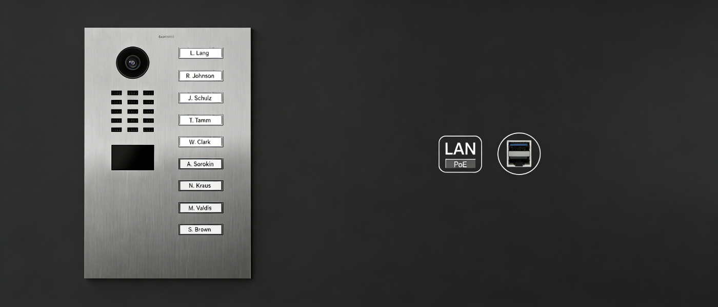 Urządzenie pracuje w oparciu o połączenie LAN i wspiera PoE, co upraszcza instalację i ułatwia prowadzenie zasilania oraz komunikacji jednym przewodem. Taki sposób montażu świetnie sprawdza się w inwestycjach komercyjnych i modernizacjach, gdzie liczy się czas, estetyka wykonania i niezawodność. W praktyce DoorBird D2109V staje się częścią infrastruktury sieciowej budynku, gotową na codzienną pracę i zdalną obsługę.