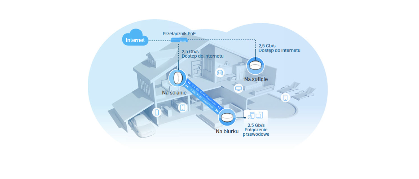 Dzięki technologii Mesh, wsparciu dla Power over Ethernet i portowi Multi-Gig 2,5 Gb/s, Deco X50-PoE sprawdzi się zarówno w nowoczesnym domu, jak i w bardziej wymagających środowiskach, takich jak biuro czy przestrzeń typu smart home.