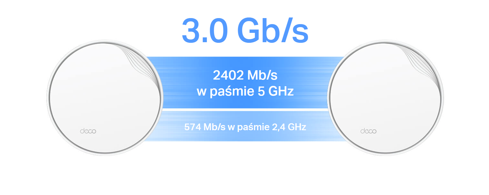 Deco X50-PoE oferuje dwupasmowe Wi-Fi 6 (AX3000) o łącznej prędkości do 3000 Mb/s: