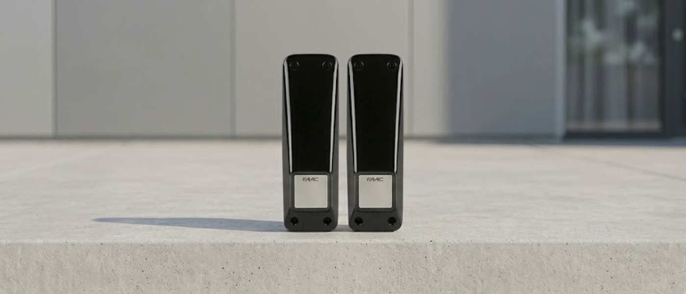 XP 20 D to regulowane fotokomórki ścienne, które warto wybrać wtedy, gdy zależy Ci na rzeczywistym zabezpieczeniu strefy przejazdu, a nie wyłącznie na samej automatyzacji otwierania. Zestaw pracuje w systemie 24 V i składa się z nadajnika oraz odbiornika. Producent przewiduje ich zastosowanie jako standardowe fotokomórki współpracujące z centralami FAAC. W codziennym użytkowaniu są szczególnie przydatne przy bramach zlokalizowanych blisko chodnika lub wjazdu, ponieważ przerwanie wiązki powoduje zatrzymanie ruchu bramy, zanim skrzydło zetknie się z samochodem, rowerem czy wózkiem.