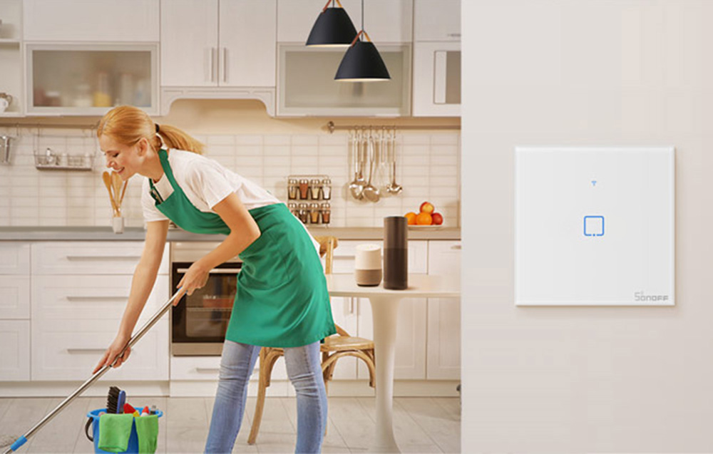 Urządzenie obsługiwane jest zdalnie poprzez aplikację eWeLink (iOS i Android), a także dotykowo lub za pomocą pilota 433 MHz. Synchronizacja ze stanem urządzenia odbywa się natychmiast, co sprawia, że aplikacja zawsze pokazuje aktualne dane. To praktyczne rozwiązanie pozwala również monitorować zużycie energii.