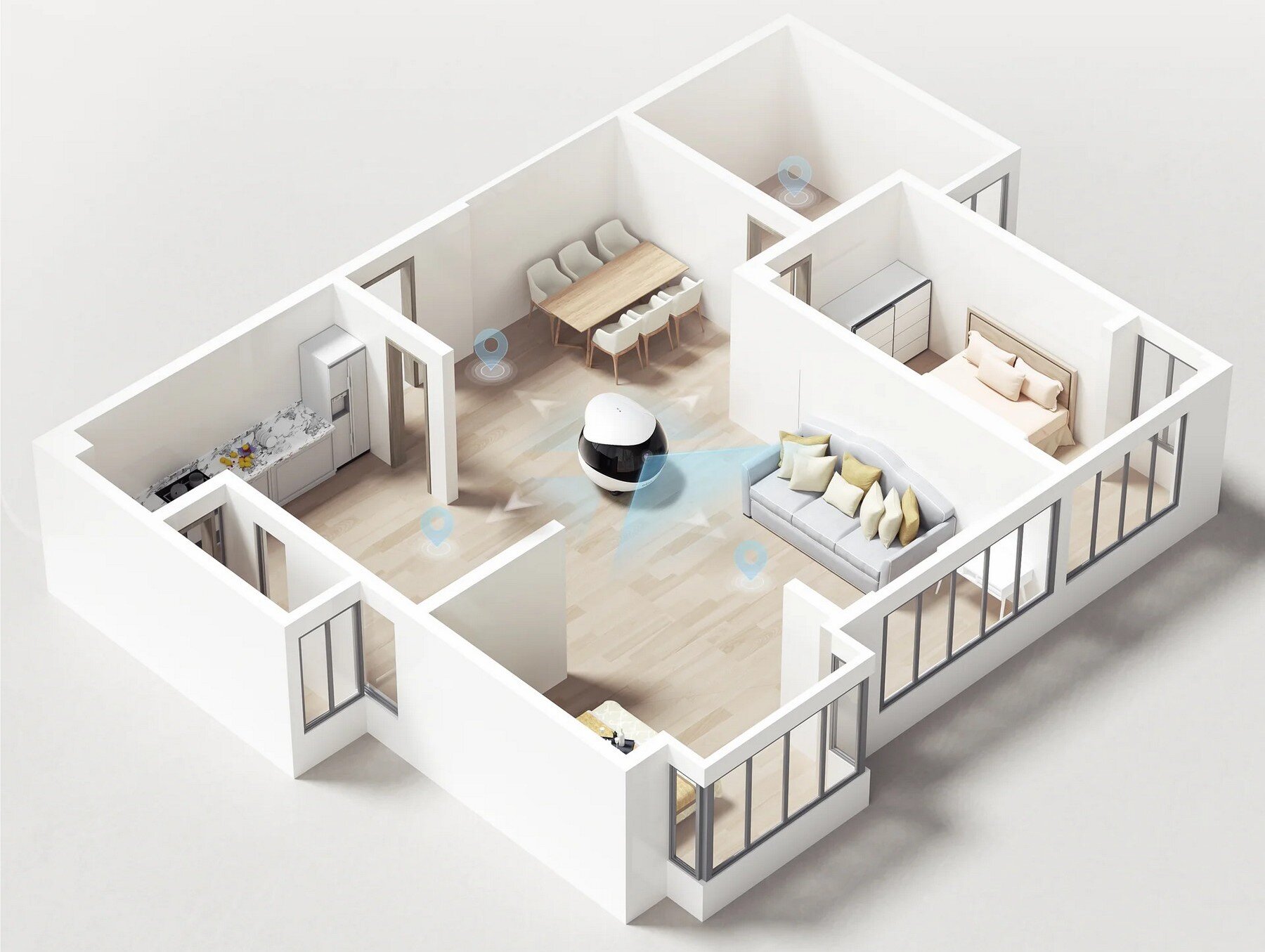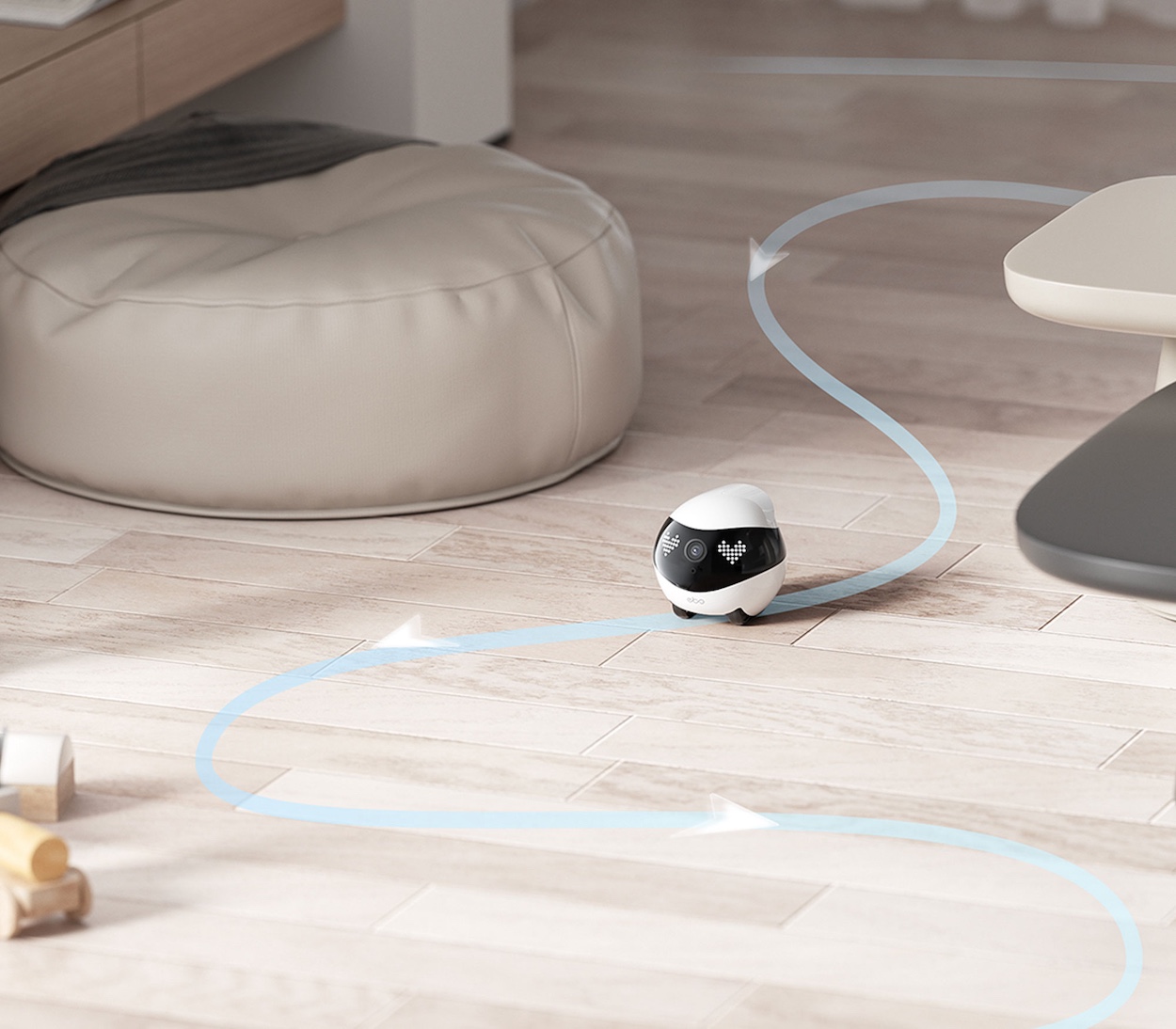 Auto-Cruise wyznacza robotowi stałe trasy patrolu i harmonogram obchodu, dzięki czemu EBO Air 2 sam regularnie sprawdza wybrane pomieszczenia. Wykrywanie ruchu analizuje kadr w czasie rzeczywistym, uruchamia nagrywanie krótkich klipów i wysyła powiadomienia do aplikacji, a wskazane strefy monitoringu pomagają ograniczyć fałszywe alarmy.