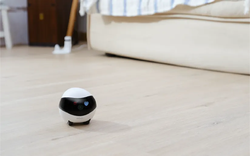EBO to coś więcej niż kamera – to mobilny towarzysz, który porusza się płynnie we wszystkich kierunkach, umożliwiając zdalną interakcję z dziećmi, nawet gdy jesteś poza domem.