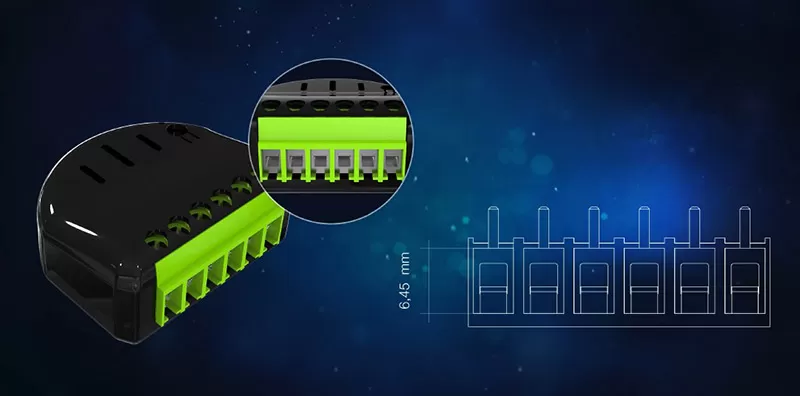 Wszystko, czego wymaga się od modułu, to podłączenie go do obecnej infrastruktury elektrycznej i umieszczenie w puszce przyłączeniowej. Instalacja modułu została przedstawiona na poniższej infografice. Double Switch może być podłączony do kabli o większej średnicy, ponieważ posiada złącza o zwiększonym przekroju.