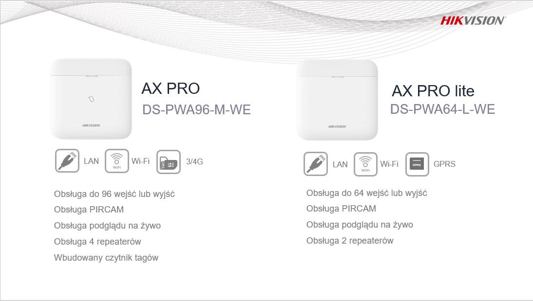 Seria AX PRO została opracowana na bazie doświadczeń z rozwiązań AX Hub i technologii Pyronix, oferując całkowicie przebudowaną platformę zabezpieczeń bezprzewodowych. System integruje urządzenia takie jak kamery monitoringu, wideodomofony czy różnorodne elementy alarmowe, łącząc je z centralą DS-PWA64-L-WE w jednym spójnym środowisku. Konfiguracja odbywa się przy pomocy oprogramowania iVMS-4200, a bieżąca kontrola poprzez Hik-Connect. Całość wspiera funkcja IVaaS, umożliwiająca oglądanie 7-sekundowych wideo obejmujących moment alarmu.
