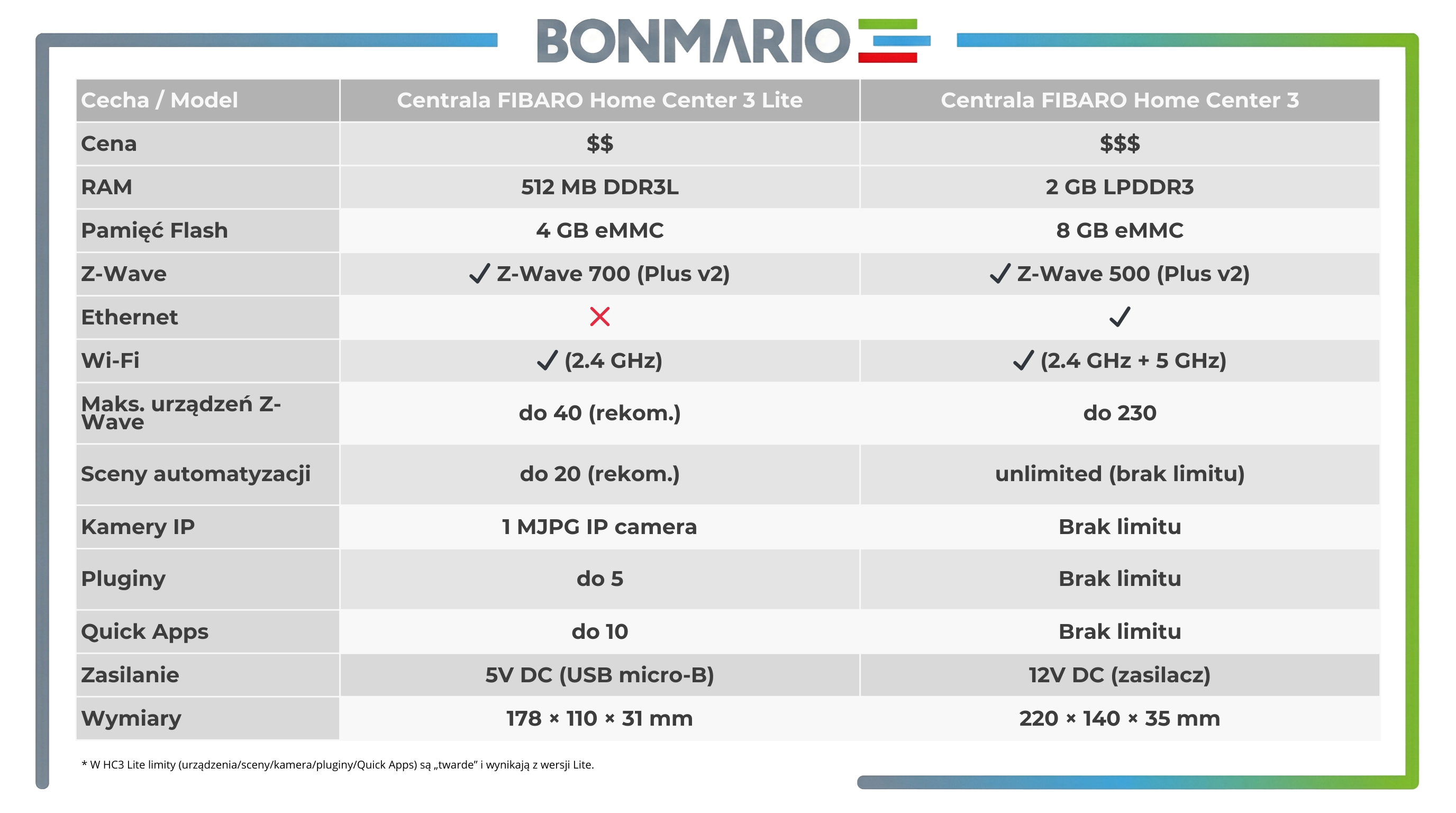 Czym HC3 Lite różni się od pełnej wersji Home Center 3?