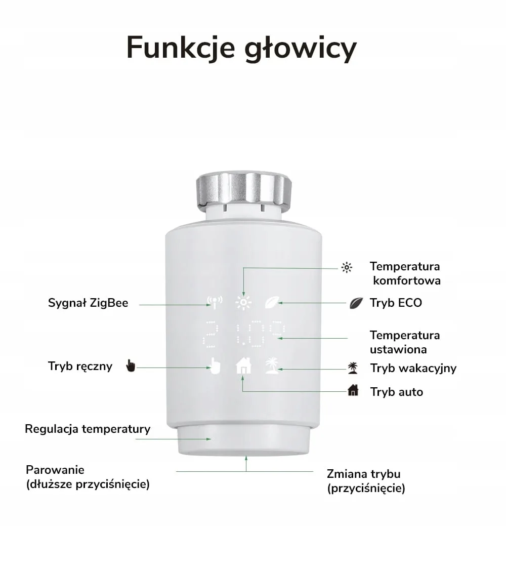 | Inteligentna głowica termostatyczna Moes (ZTRV-ZX-TV02-EN) Tuya Zigbee | |