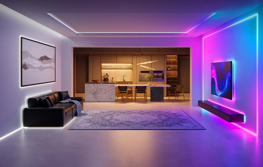 Taśmę możesz obsługiwać głosowo, pilotem lub smartfonem. Wbudowany mikrofon umożliwia synchronizację światła z muzyką, dzięki czemu taśma rozświetla się w rytm ulubionych utworów. Po sparowaniu z czujnikiem ruchu LED-y mogą automatycznie włączać się, gdy tylko wejdziesz do pomieszczenia.