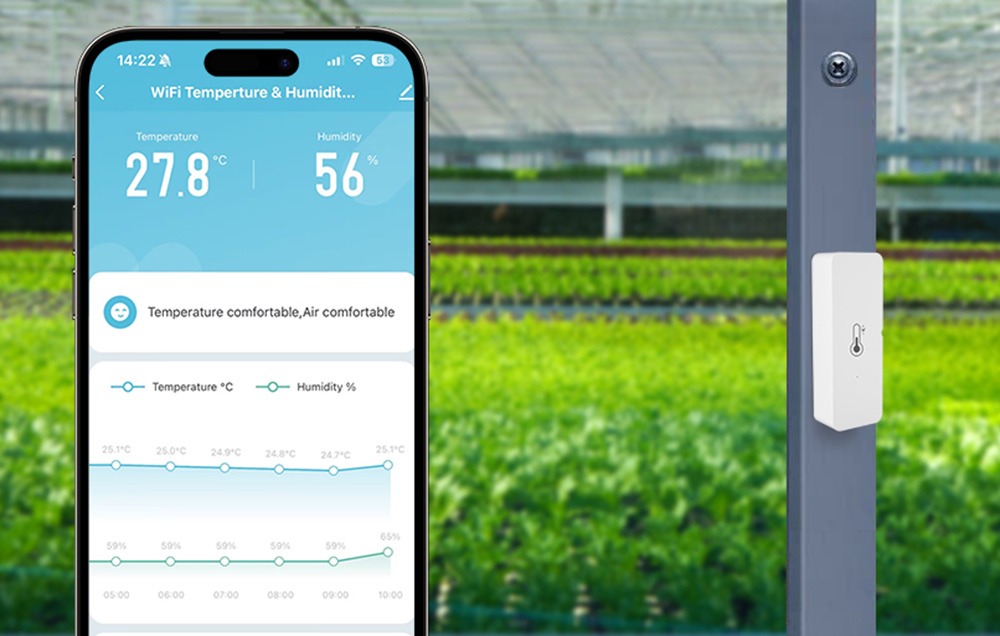 Po podłączeniu do sieci Wi-Fi możesz sprawdzać temperaturę i wilgotność w czasie rzeczywistym z dowolnej lokalizacji – niezależnie, czy jesteś w pracy, czy na wakacjach. Zasięg nie ma ograniczeń – wszystkie dane są przesyłane przez chmurę, więc możesz cieszyć się dostępem do aktualnych informacji z czujnika.