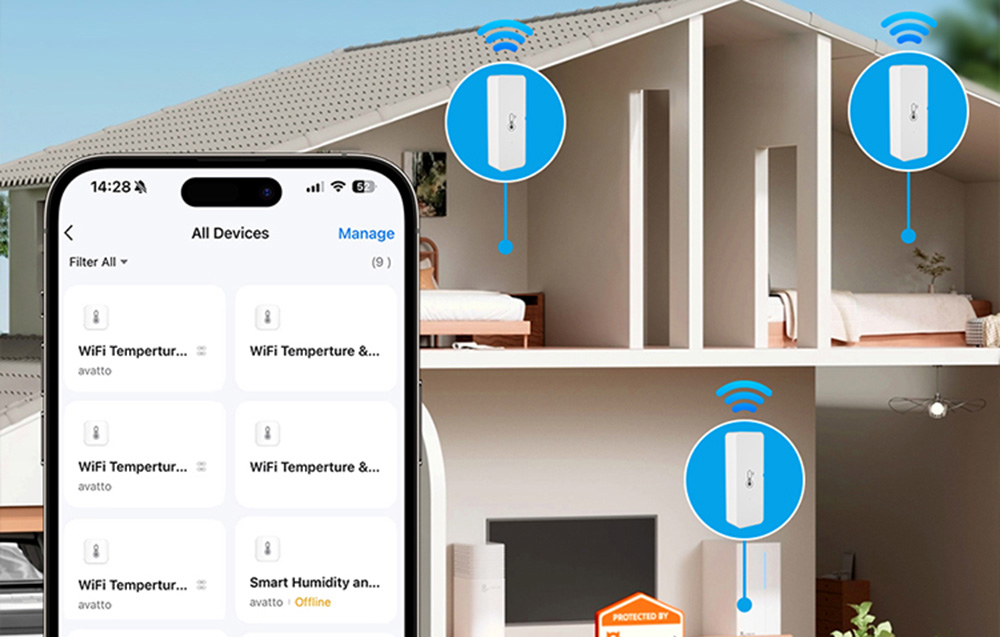 AVATTO WHS10 bez problemu integruje się z innymi urządzeniami smart home. Po połączeniu z pilotem Wi-Fi IR Remote możesz automatycznie sterować klimatyzatorem, nawilżaczem lub wentylatorem. Ustaw reguły, takie jak: „Jeśli temperatura przekroczy 30°C, włącz klimatyzację”, aby utrzymać komfortowy klimat bez Twojej ingerencji.