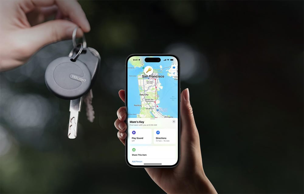Już nie musisz stresować się zgubą. Yeetag łączy się przez Bluetooth i pozwala namierzać przedmioty również na większym dystansie dzięki sieci urządzeń; wystarczy skorzystać z aplikacji „Znajdź” (Find My), aby zobaczyć ich pozycję na mapie. Łączność Bluetooth · Współpraca z aplikacją Find My