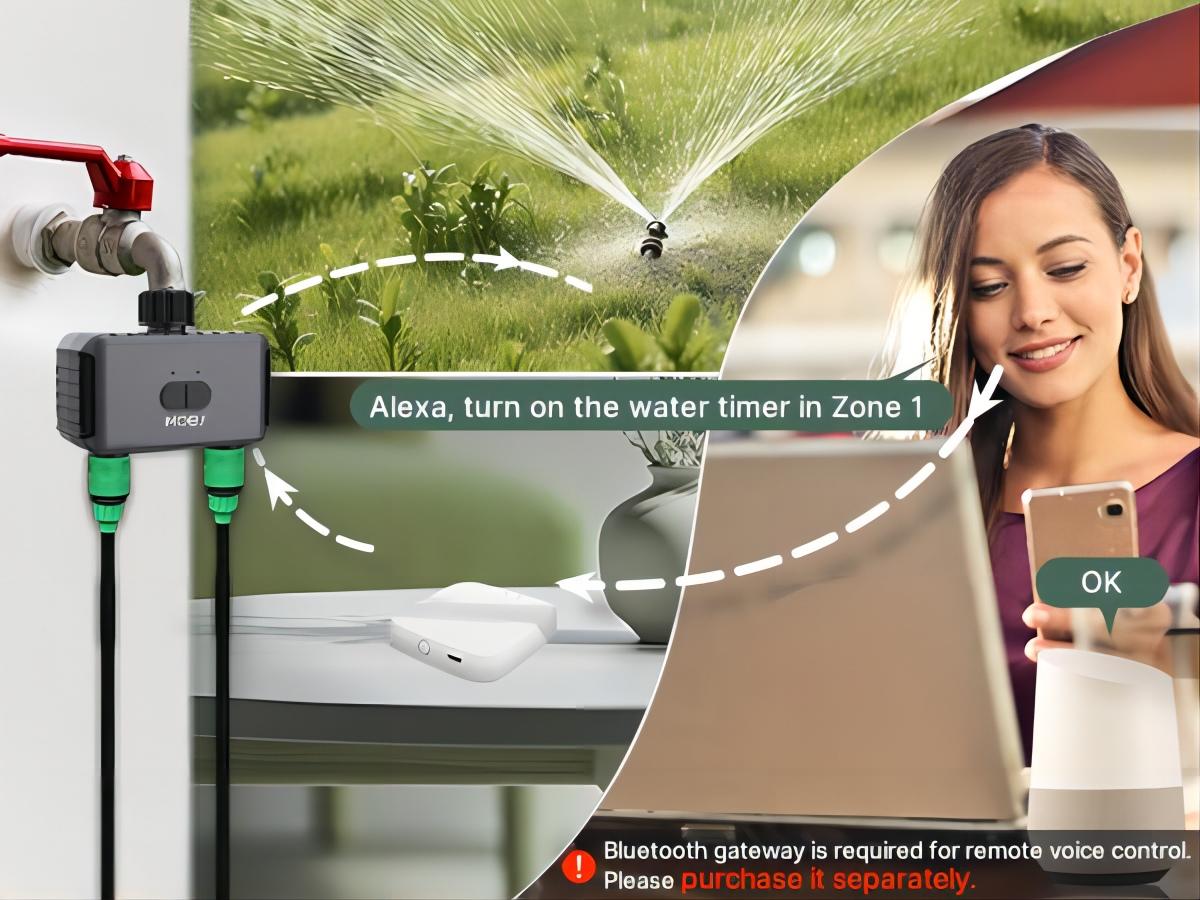 Automatyzuj podlewanie swojego ogrodu dzięki inteligentnemu, dwukanałowemu zaworowi MOES BWV-YC02-EU, który umożliwia precyzyjne zarządzanie dwiema osobnymi strefami nawadniania. Urządzenie pozwala łatwo dopasować ilość wody do potrzeb różnych roślin, a dzięki łączności Bluetooth i aplikacji MOES/Tuya możesz kontrolować cały proces z dowolnego miejsca, zapewniając roślinom właściwe nawodnienie bez nadmiernego zużycia wody.