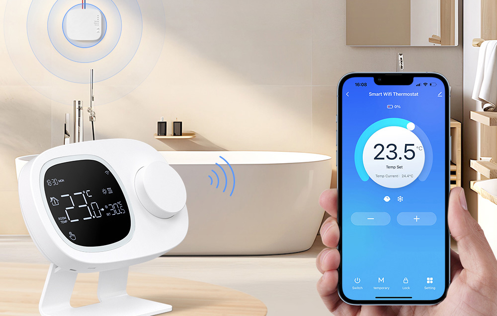 Dzięki integracji z aplikacjami Tuya, Smart Life oraz Avatto możesz zdalnie ustawiać temperaturę, planować harmonogram pracy i sprawdzać aktualne warunki w pomieszczeniu. Termostat współpracuje z Wi-Fi oraz sygnałem RF433, co pomaga utrzymać stabilną komunikację nawet przy większych odległościach.