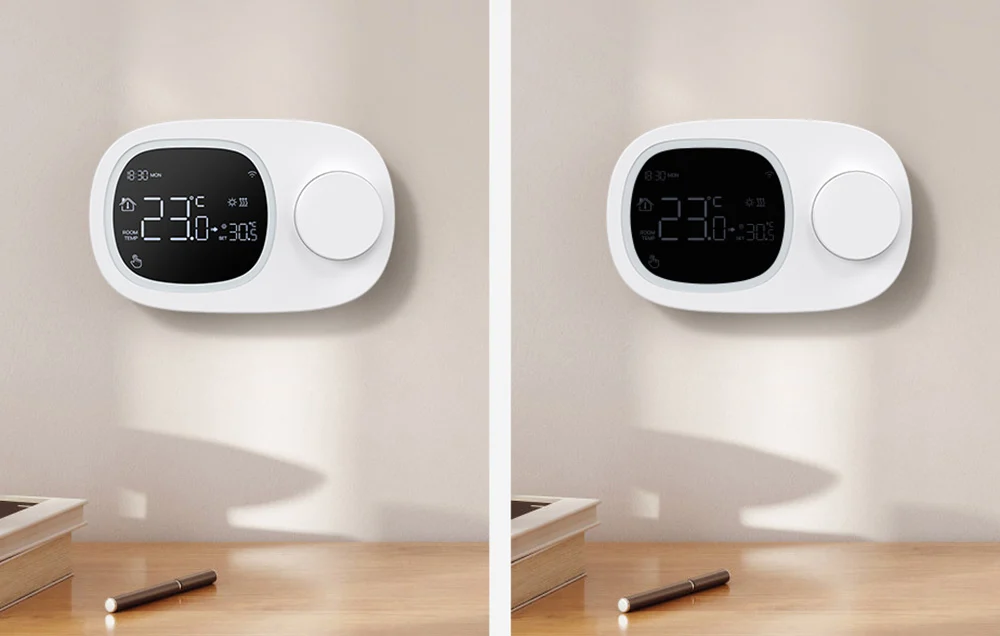 Termostat został wyposażony w ekran z podświetleniem, które aktywuje się podczas pracy, co poprawia czytelność. W trybie czuwania wyświetlacz automatycznie się ściemnia, dzięki czemu zmniejsza zużycie energii i jednocześnie nie przeszkadza w nocy. Dane nadal pozostają widoczne, ale nie są nadmiernie intensywne.