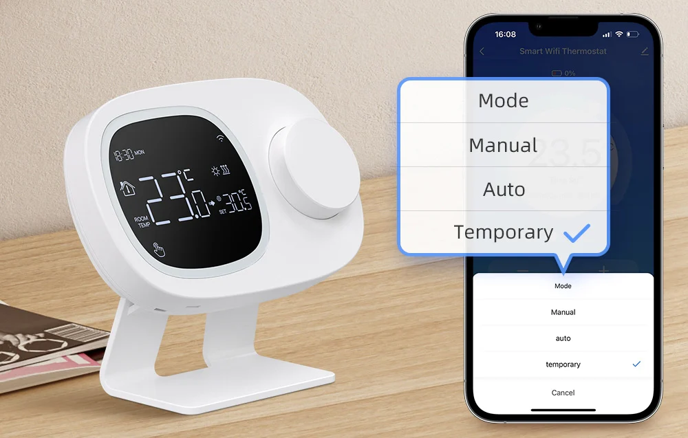 Termostat WiFi Avatto WT598-1T1 to praktyczne urządzenie, które umożliwia dokładne sterowanie temperaturą w domu. Dzięki łączności WiFi oraz współpracy z aplikacjami Smart Life, Tuya, Amazon Alexa i Google Home zyskujesz pełną kontrolę nad ogrzewaniem z dowolnego miejsca i o każdej porze. Prosta obsługa, czytelny ekran i wygodne funkcje sprawiają, że to rozwiązanie dobrze pasuje do codziennego użytkowania. Dodatkowo termostat możesz zamontować na dwa sposoby - postawić go na biurku albo przymocować do ściany, co ułatwia dopasowanie urządzenia do układu pomieszczenia i własnych preferencji.