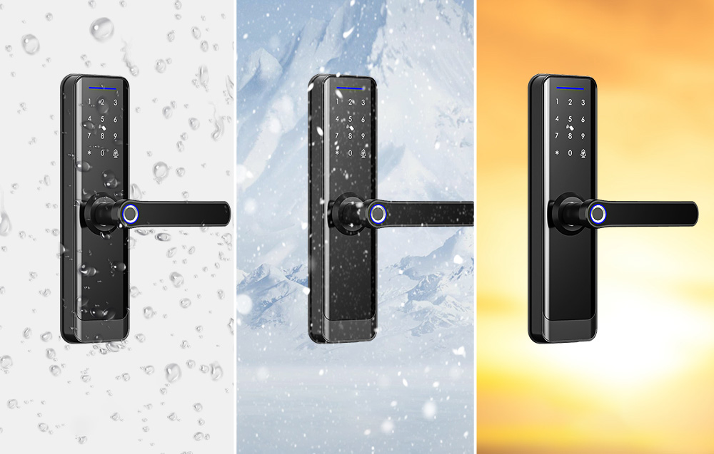 Model ten posiada certyfikat IP55, co zapewnia ochronę przed wodą, śniegiem i wilgocią. Zamek niezawodnie działa w temperaturach od –20°C do 50°C i przy wilgotności do 95%, dzięki czemu świetnie sprawdza się zarówno wewnątrz, jak i na zewnątrz budynku.