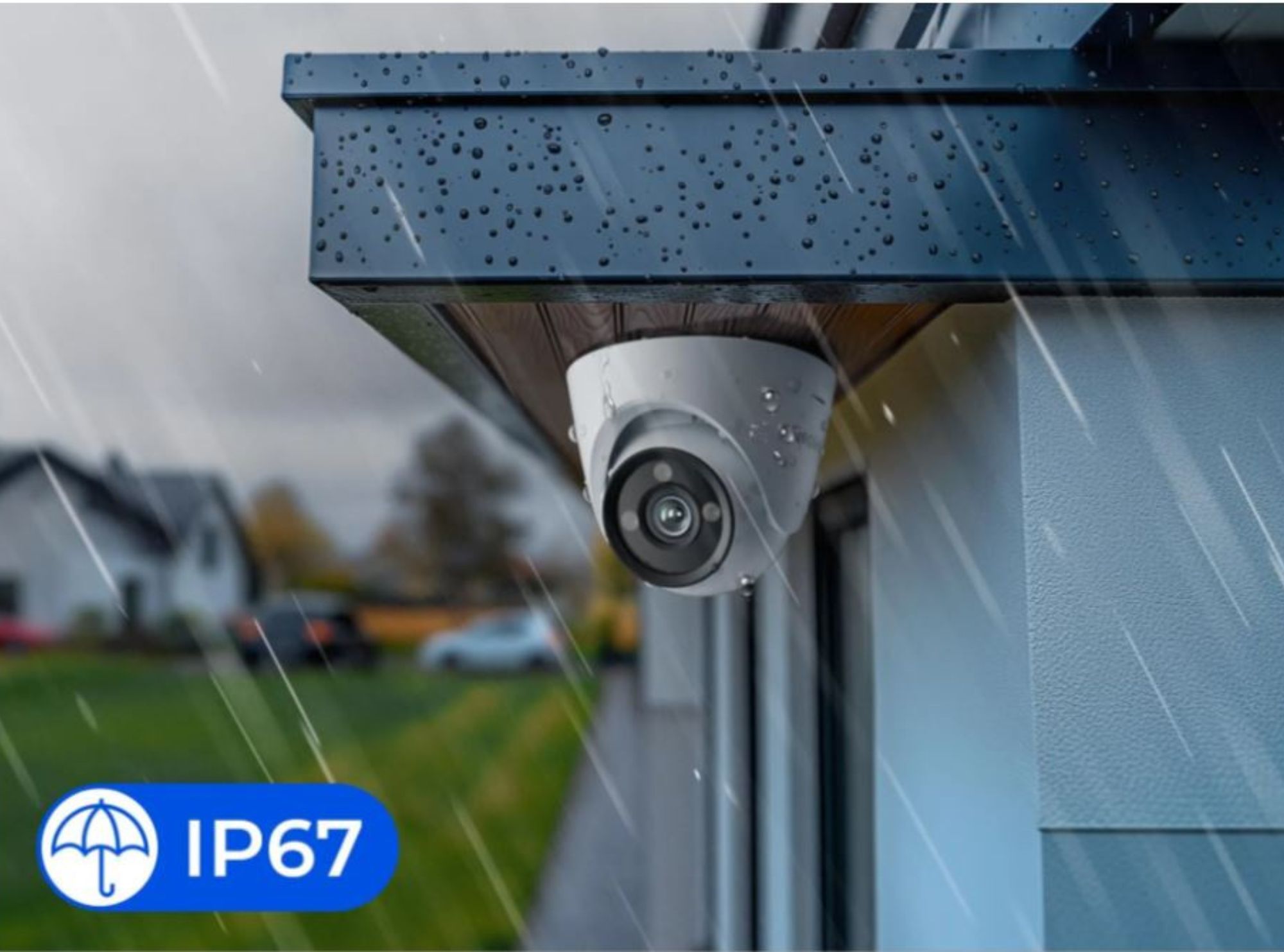 Szczelna obudowa z klasą IP67 chroni kamerę przed pyłem i deszczem, dzięki czemu sprzęt nadaje się do całorocznego montażu na zewnątrz. Kamera zachowuje niezawodność również podczas intensywnych opadów i wiatru, gdy warunki dla elektroniki bywają najbardziej wymagające.