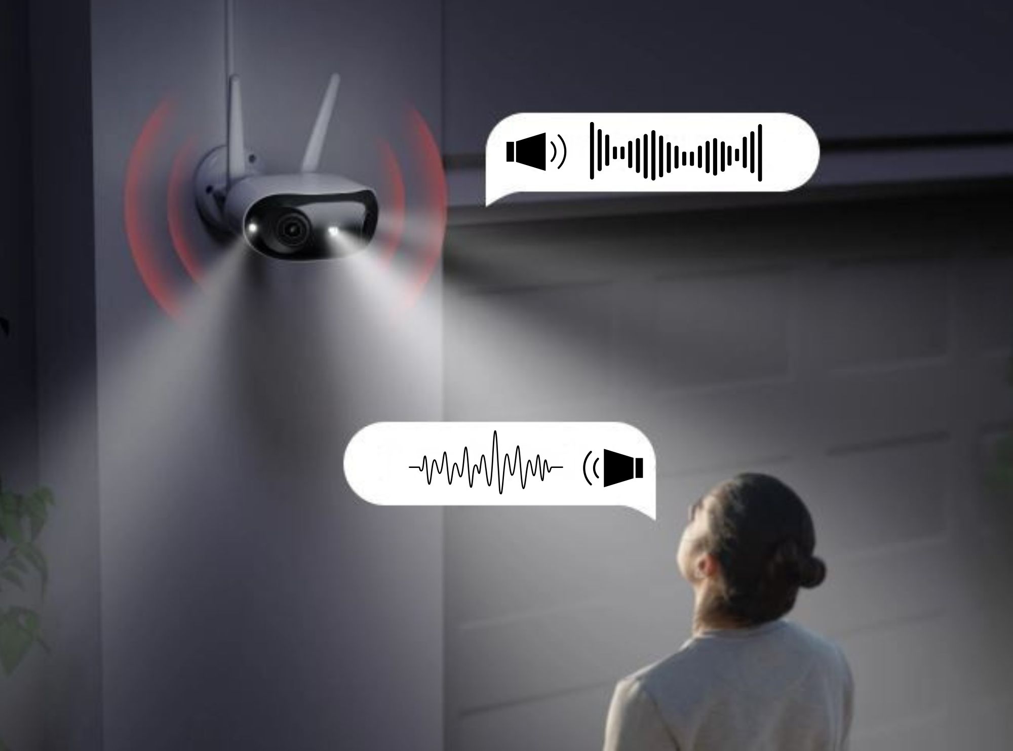 Funkcja audio umożliwia prowadzenie rozmowy z osobą znajdującą się przy kamerze, niezależnie od tego, gdzie akurat jesteś. To praktyczne wsparcie zarówno do krótkiej komunikacji, jak i do zdalnego „dopilnowania” sytuacji przy wejściu czy na podjeździe.
