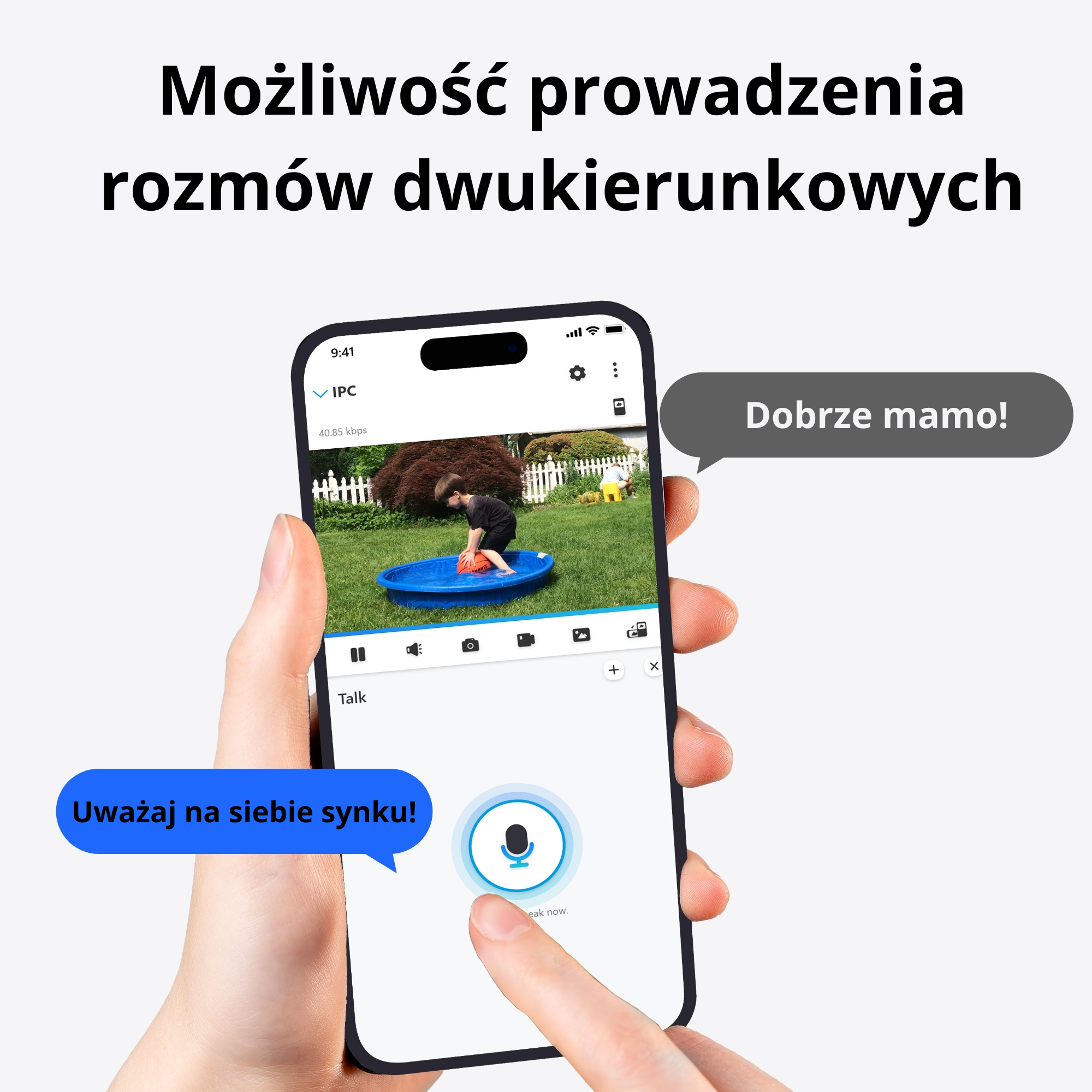 Wbudowane głośnik i mikrofon umożliwiają dwukierunkową komunikację, a w razie potrzeby możesz uruchomić syrenę alarmową. Materiały zapiszesz na karcie microSD (do 128 GB) lub w chmurze (usługa płatna), a dostęp ułatwia aplikacja Reolink bez miesięcznych opłat. Dodatkowo sterowanie głosowe Google pozwala szybko wywołać podgląd bez użycia rąk.