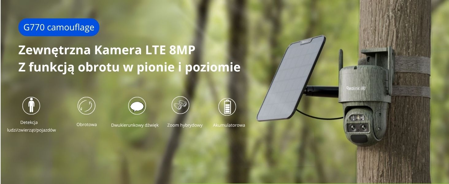 Kamera Reolink G770 zapewnia doskonałą jakość obrazu 8MP, a jej inteligentne algorytmy pozwalają na rozpoznawanie osób, pojazdów oraz zwierząt. To w pełni obrotowe urządzenie oferuje szerokie możliwości zastosowania zarówno w domowym, jak i profesjonalnym monitoringu. Kamera obsługuje połączenie LTE 4G oraz posiada dwukierunkową komunikację audio, co umożliwia łatwą interakcję z osobami znajdującymi się w zasięgu urządzenia. Dzięki klasie szczelności IP66 kamera doskonale sprawdza się w trudnych warunkach atmosferycznych. Panel solarny widoczny na zdjęciach należy dokupić osobno.