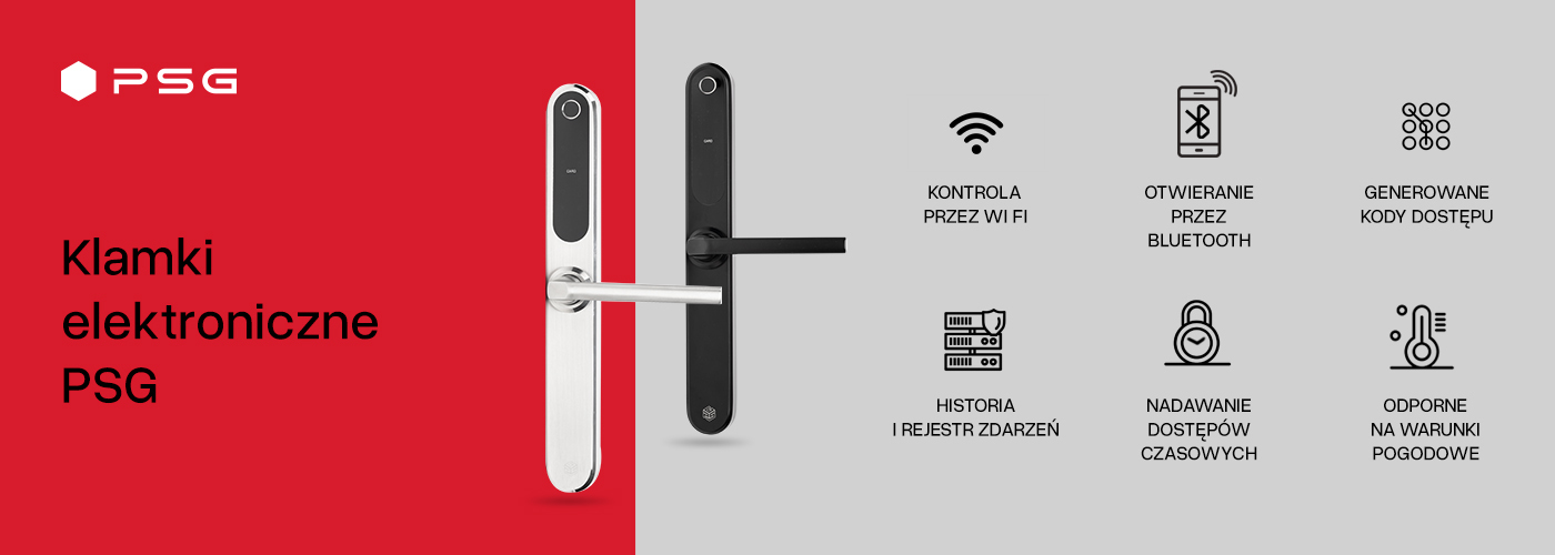 - stabilna praca w warunkach zewnętrznych – zakres temperatur od -10 do +55°C oraz wysoka odporność na wilgoć sprawiają, że klamka działa niezawodnie przez cały rok