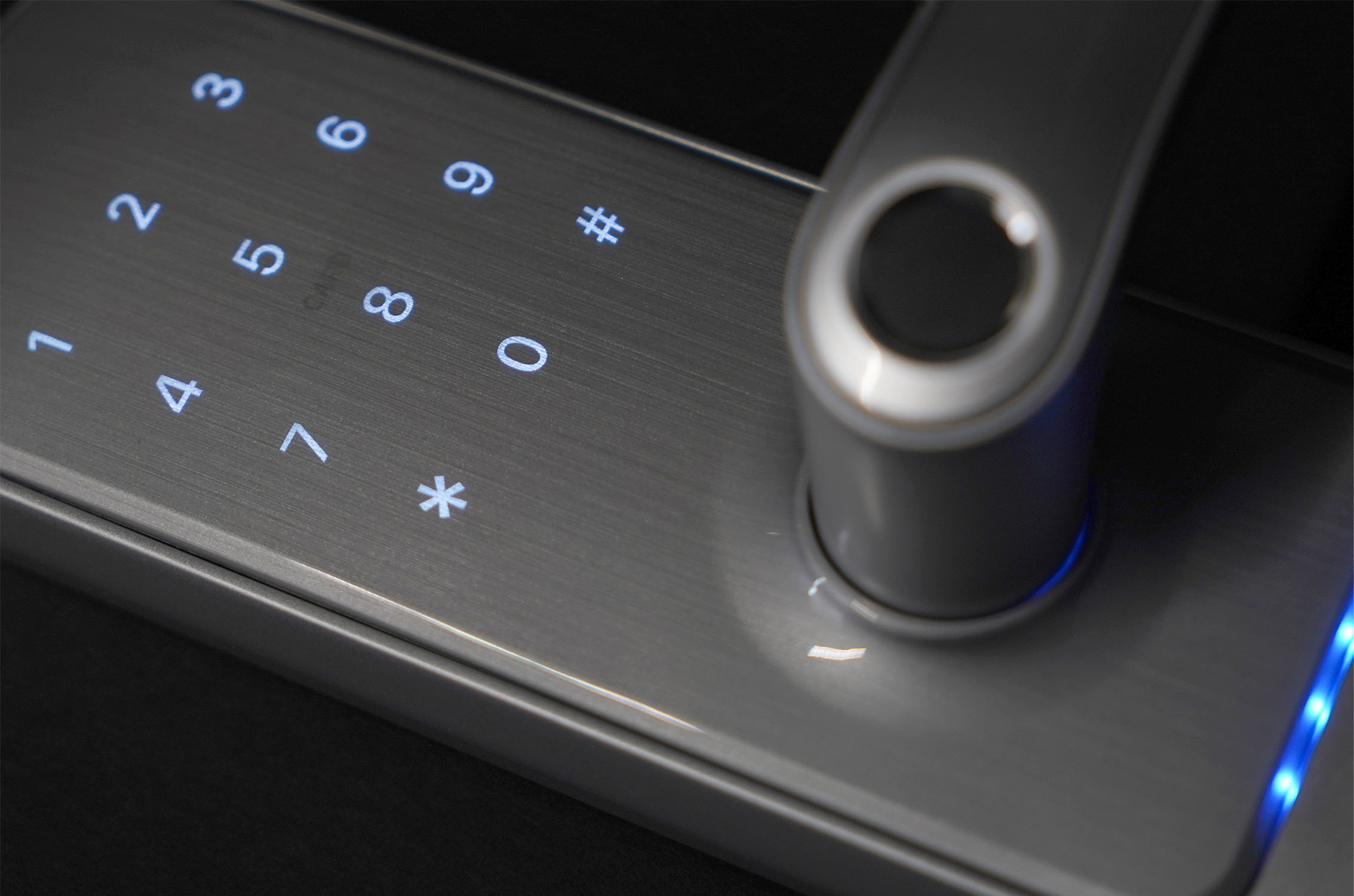 Na obudowie znajduje się dotykowy szyfrator z wbudowanym czytnikiem kluczy zbliżeniowych oraz modułem Bluetooth. Po wpisaniu kodu lub zbliżeniu breloka RFID do czytnika, klamka wysyła impuls do modułu kontroli dostępu, który uruchamia serwomotor i odblokowuje przekładnię mechaniczną. Użytkownik ma wtedy około 5 sekund na naciśnięcie klamki, po czym system automatycznie wraca do stanu blokady.