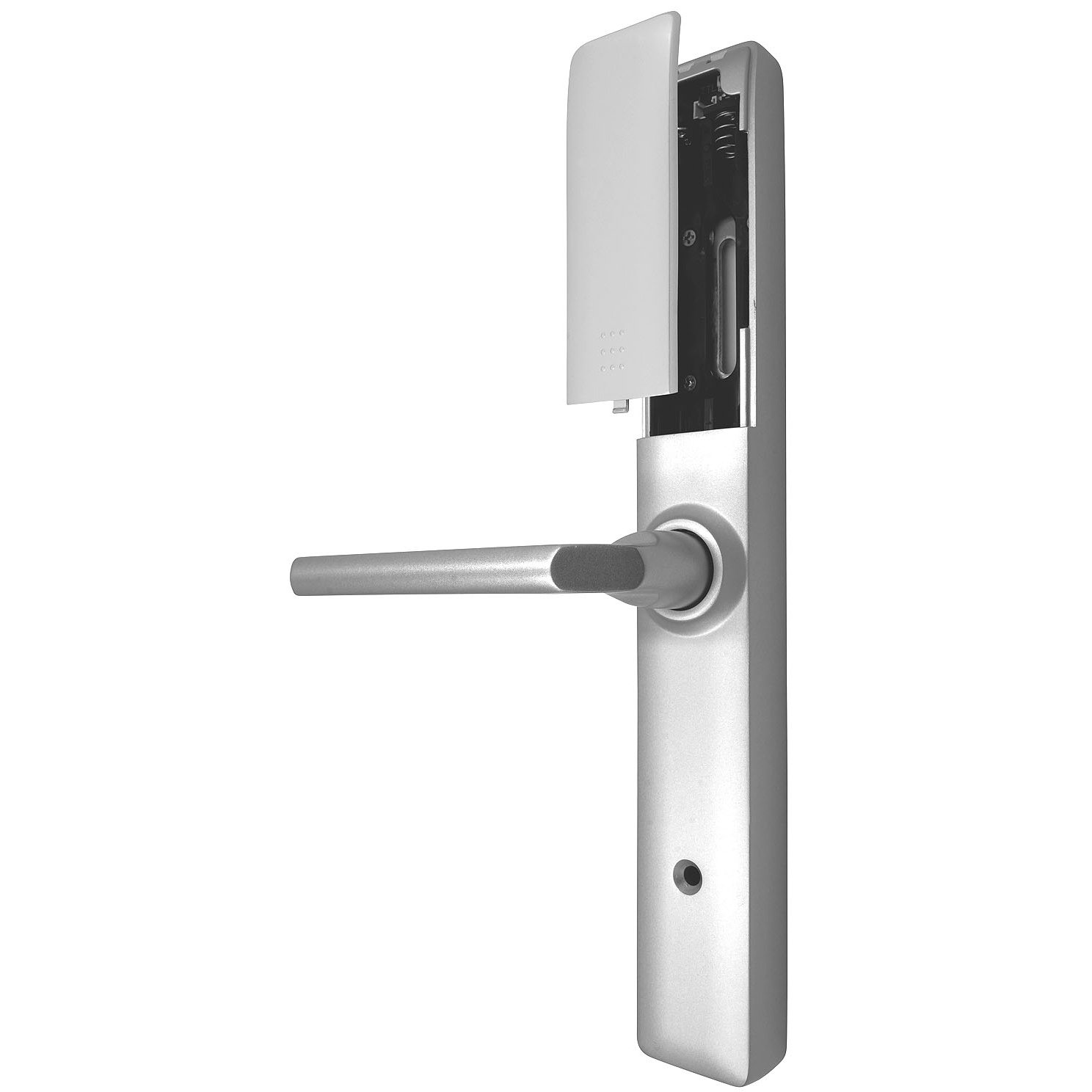Od strony wewnętrznej drzwi można zawsze otworzyć standardowym ruchem klamki, a po ich zamknięciu następuje natychmiastowe zadziałanie zapadki, chroniące przed wejściem z zewnątrz. W przypadku rozładowania baterii lub awarii istnieje możliwość otwarcia drzwi przy użyciu zwykłego klucza mechanicznego, którego dwie sztuki znajdują się w zestawie.