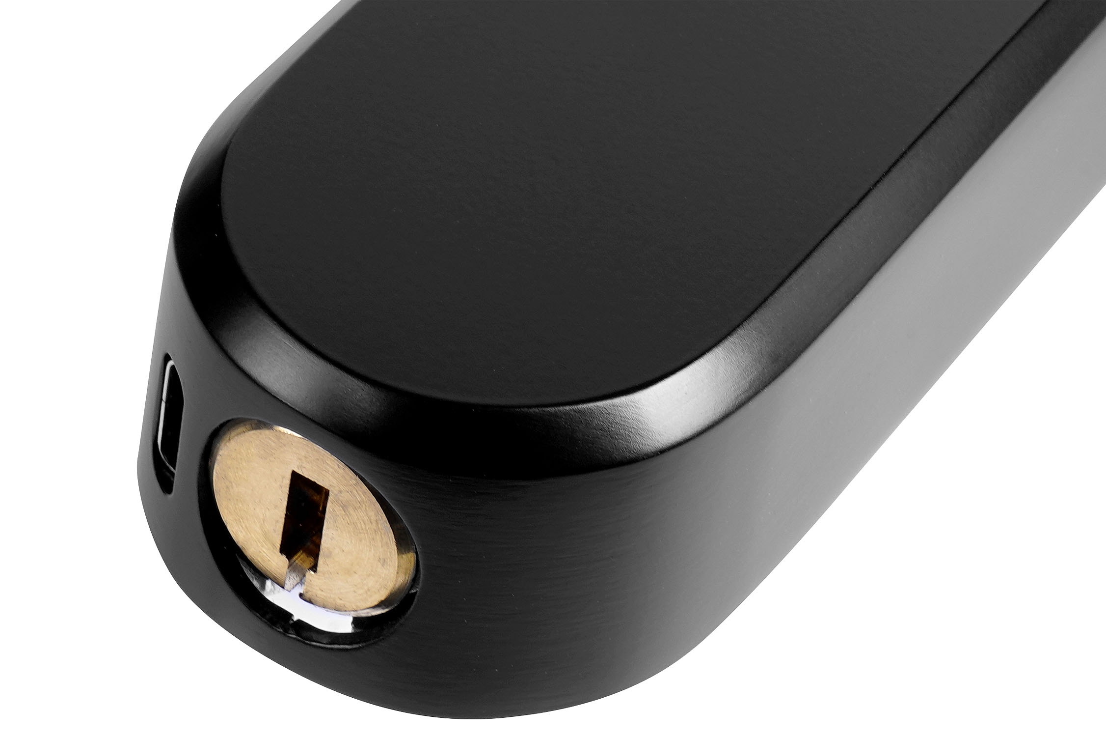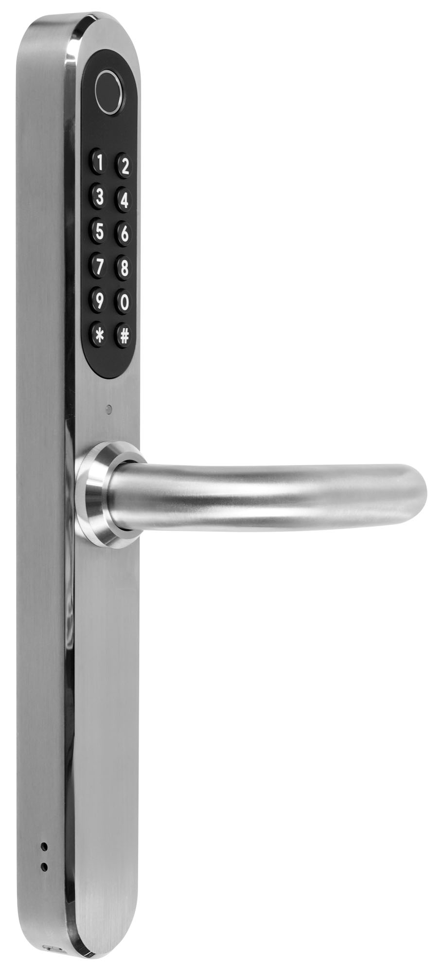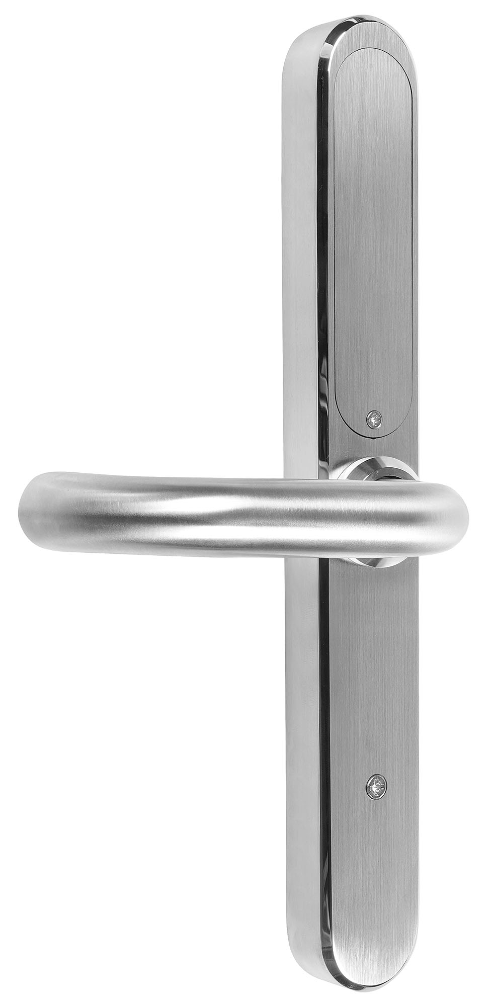 Korpus wykonano z wysokiej jakości stali nierdzewnej, a wbudowany mechaniczny szyfrator z czytnikiem RFID i modułem Bluetooth umożliwia szybkie i bezpieczne otwieranie. Po zbliżeniu breloka RFID lub wpisaniu kodu, system wysyła impuls do mechanizmu, który odblokowuje przekładnię na około 5 sekund – w tym czasie drzwi można otworzyć zwykłym naciśnięciem klamki. Po upływie tego czasu zamek automatycznie wraca do stanu blokady.