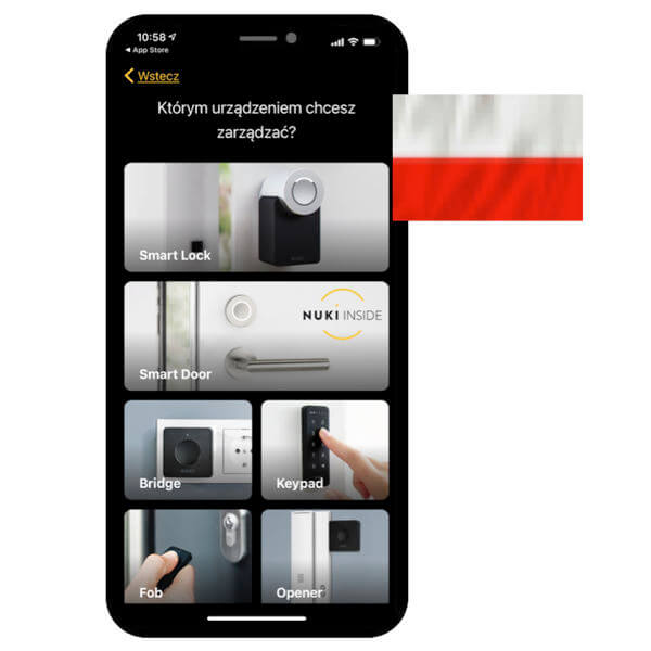 Nie jest wymagana żadna jednostka sterująca NUKI. Możliwa jest bezpośrednia komunikacja między gadżetem a zamkiem NUKI Smart Lock.