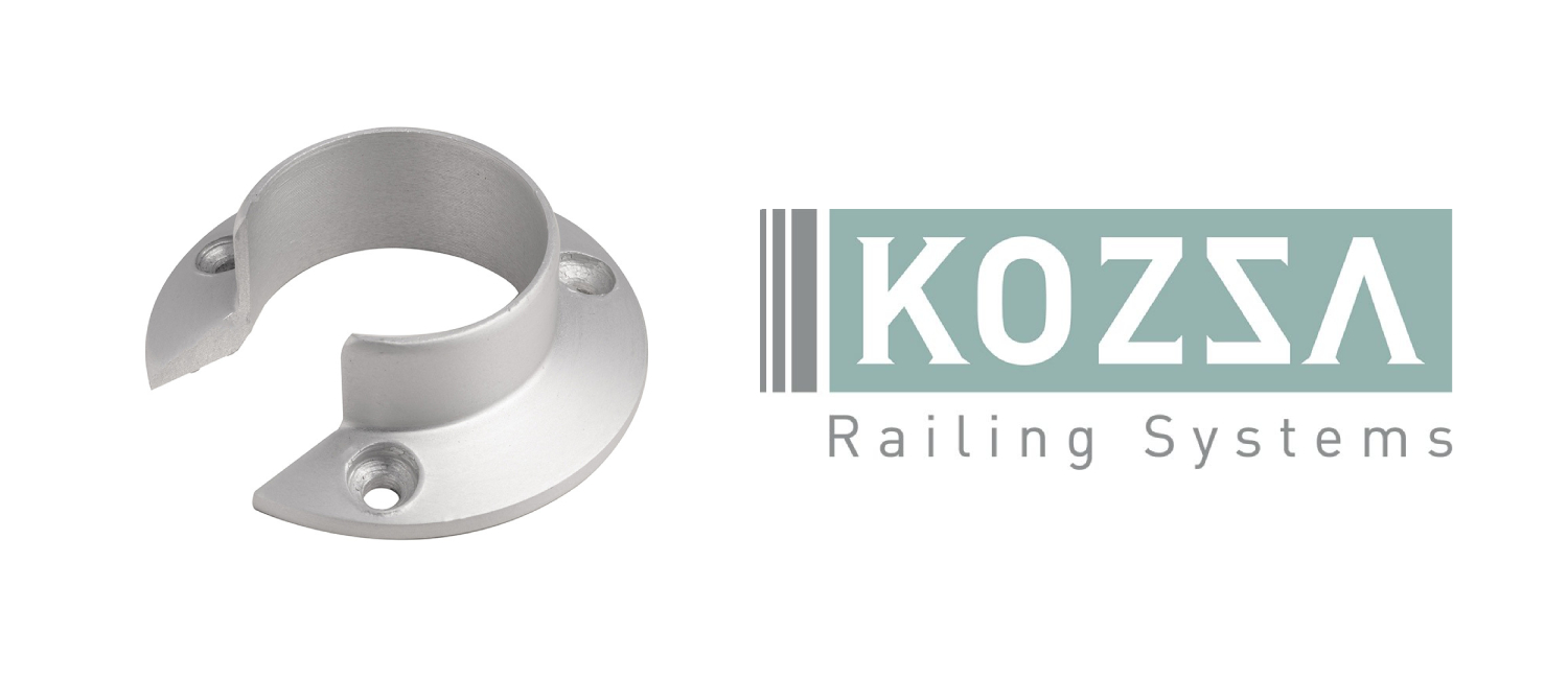 Mocowanie osiowe marki Kozza to dopracowany element montażowy, który pozwala pewnie i estetycznie osadzić okrągły pochwyt aluminiowy fi 40 mm w systemach balustrad.