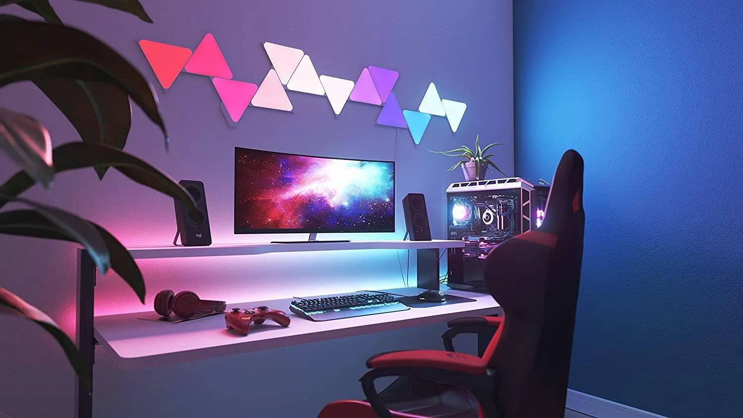 Nanoleaf Shapes oferują funkcje, które wynoszą rozrywkę na wyższy poziom. Screen Mirror przenosi kolory z monitora lub telewizora na ścianę, otaczając Cię światłem zsynchronizowanym z akcją. Rhythm Music Visualizer zamienia dźwięki w widowisko świetlne, a panele reagują także na dotyk i gesty, pozwalając sterować światłem i innymi inteligentnymi urządzeniami w domu.