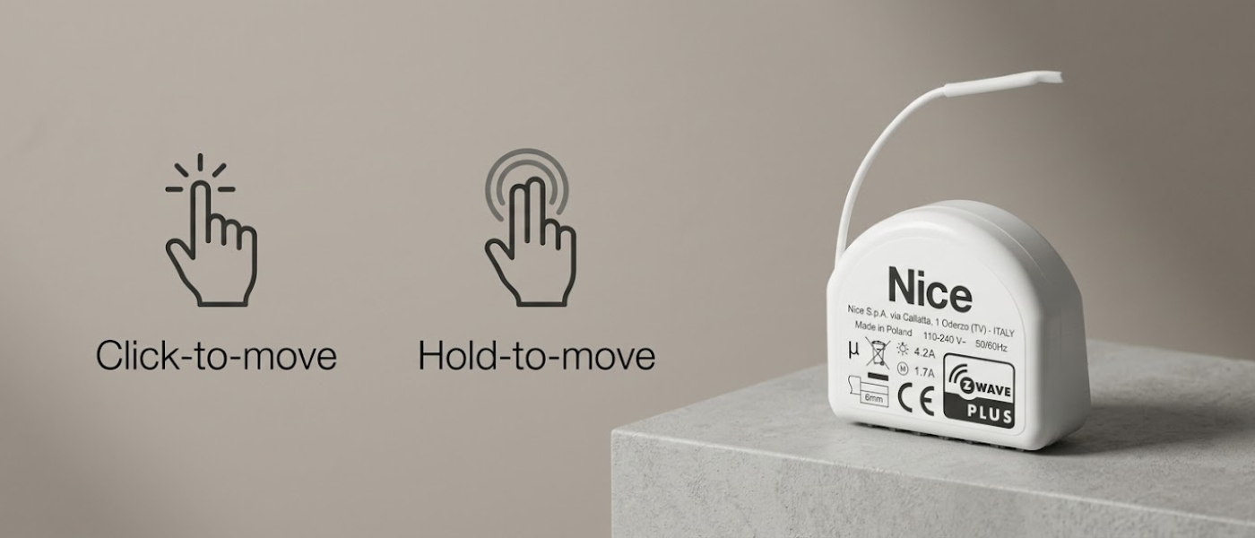 Nice Roll-Control 2 pracuje w oparciu o chip Z-Wave serii 800, co oznacza nowoczesną, energooszczędną i stabilną komunikację w ramach inteligentnego domu. Moduł można dodać do sieci w klasycznym trybie inclusion lub skorzystać z funkcji SmartStart, która umożliwia automatyczne dodanie urządzenia po zeskanowaniu kodu QR. Dodatkowym atutem jest obsługa szyfrowania S0 i S2, co zwiększa bezpieczeństwo wymiany danych w systemie.