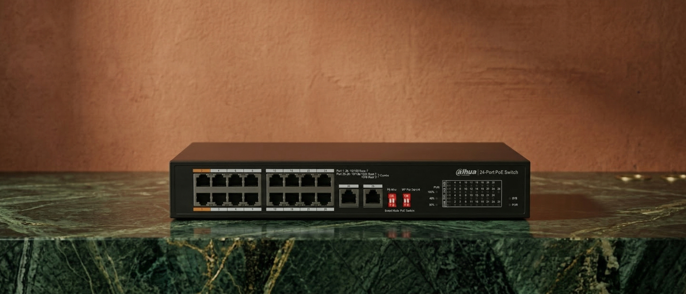 Przełącznik sieciowy Switch PoE Nice PFS3226-24ET-240 to wydajne rozwiązanie stworzone z myślą o rozbudowanych instalacjach, w których liczy się stabilna transmisja danych, wygodne zasilanie urządzeń i sprawne zarządzanie siecią. Dzięki technologii Power over Ethernet urządzenie pozwala przesyłać dane i zasilanie jednym kablem Ethernet, co upraszcza montaż, porządkuje okablowanie i ułatwia organizację całej infrastruktury.