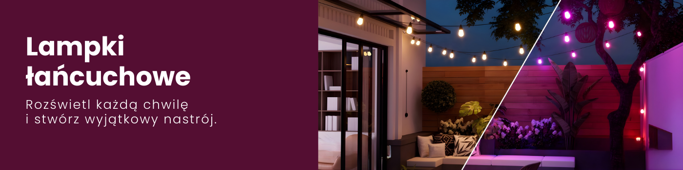 Stwórz wyjątkowy klimat w domu i ogrodzie: lampki łańcuchowe rozświetlą każdą przestrzeń ciepłym, dekoracyjnym blaskiem. Doskonale sprawdzą się na tarasie, balkonie, w salonie czy podczas spotkań na świeżym powietrzu, dodając wnętrzom i otoczeniu przytulnego charakteru.